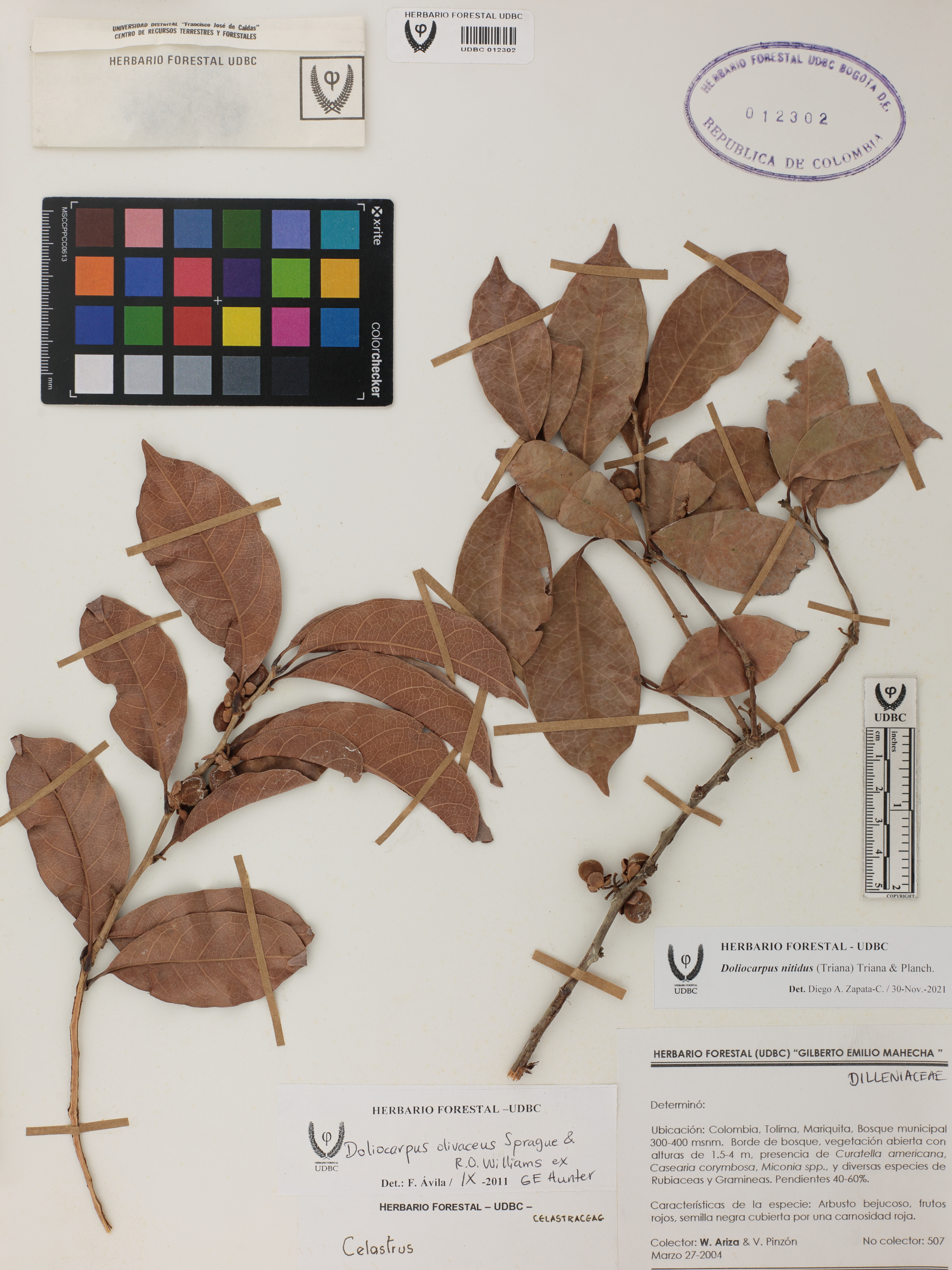 | dc.description | Fotografía del ejemplar Ariza, W. 507, determinado como Doliocarpus nitidus en el año 2021 | |