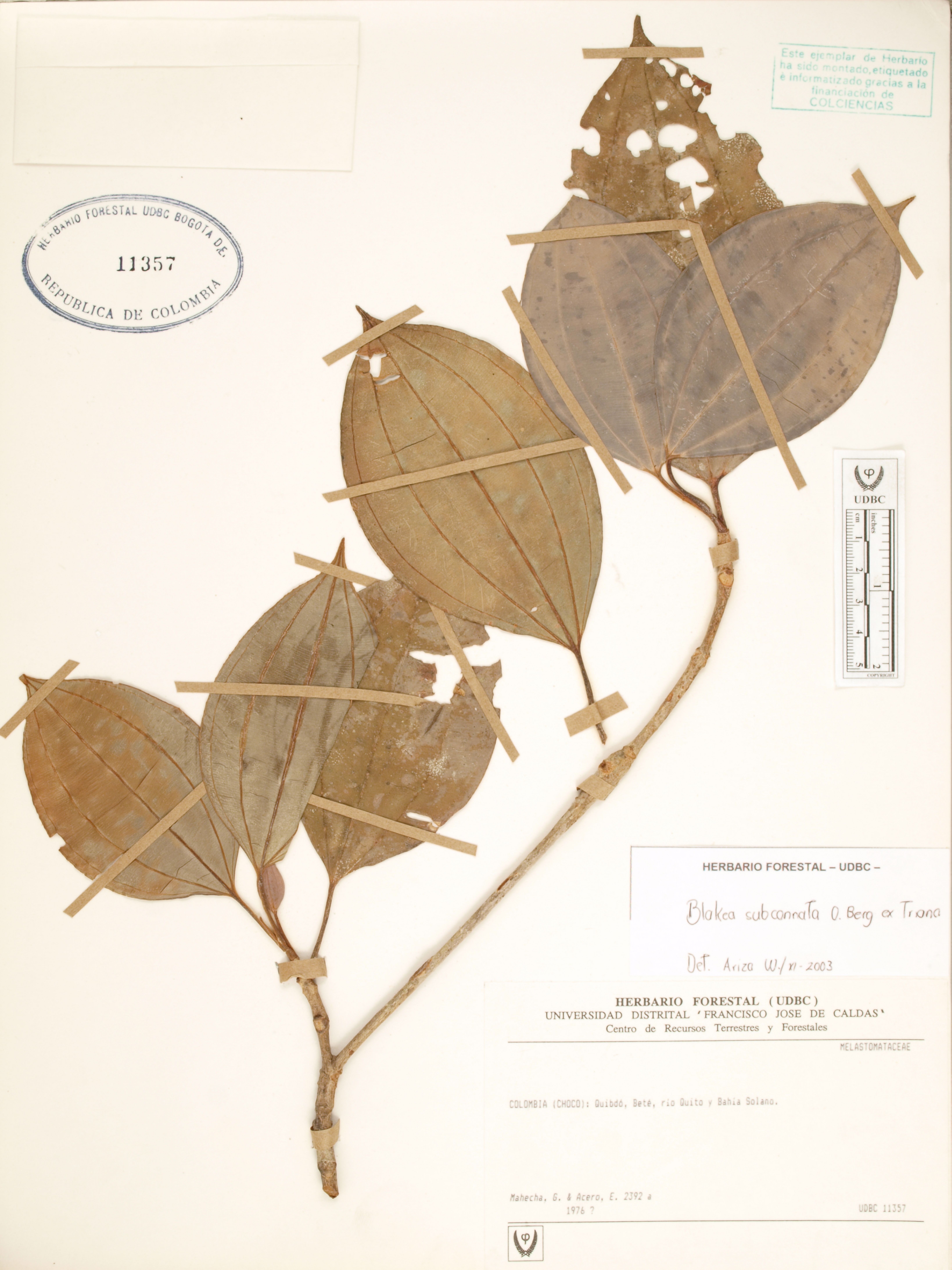 Fotografía del ejemplar Mahecha, G. 2392, determinado como Blakea subconnata en el año 2003