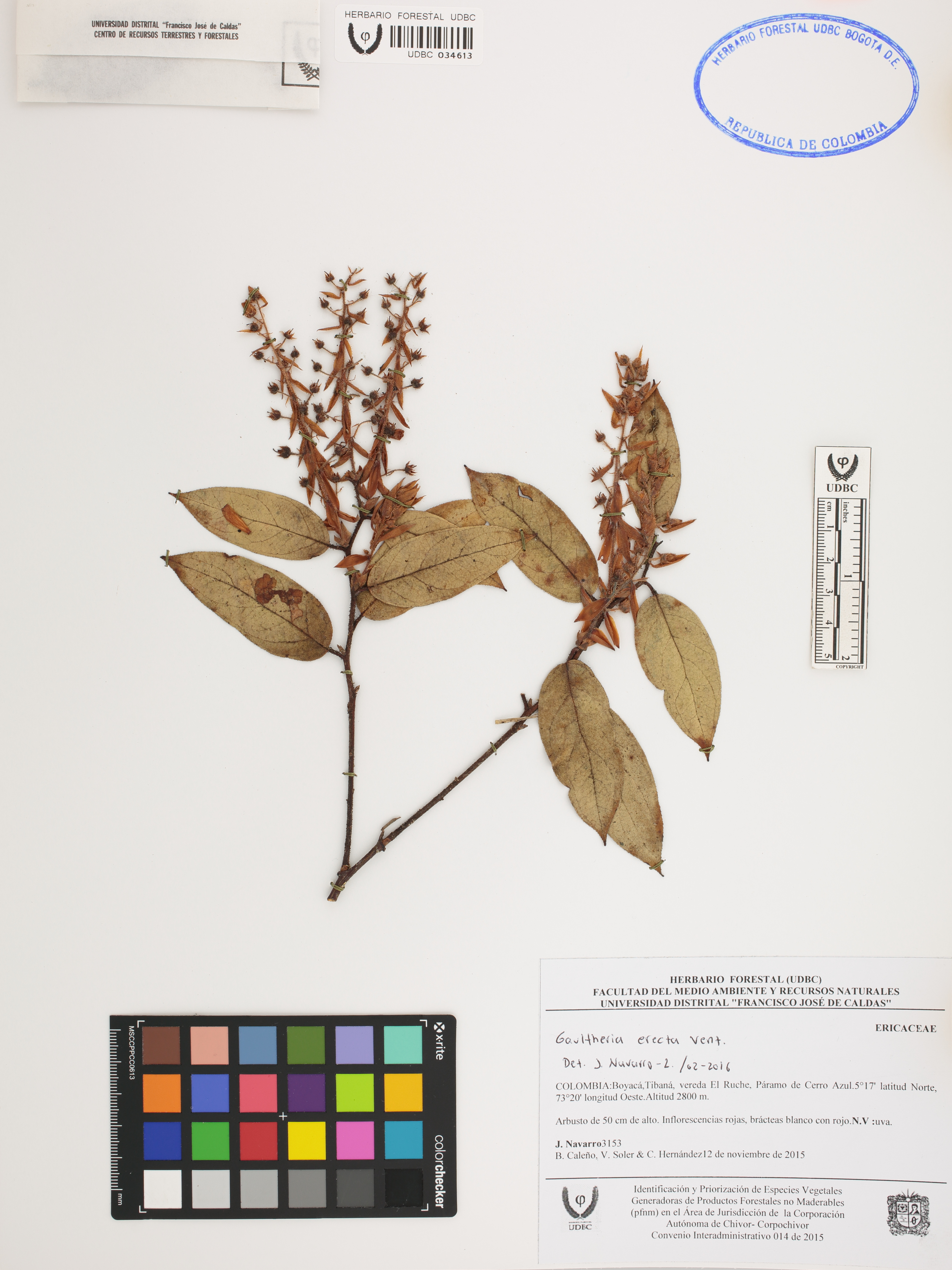 Fotografía del ejemplar Navarro, J. 3153, determinado como Gaultheria erecta en el año 2016
