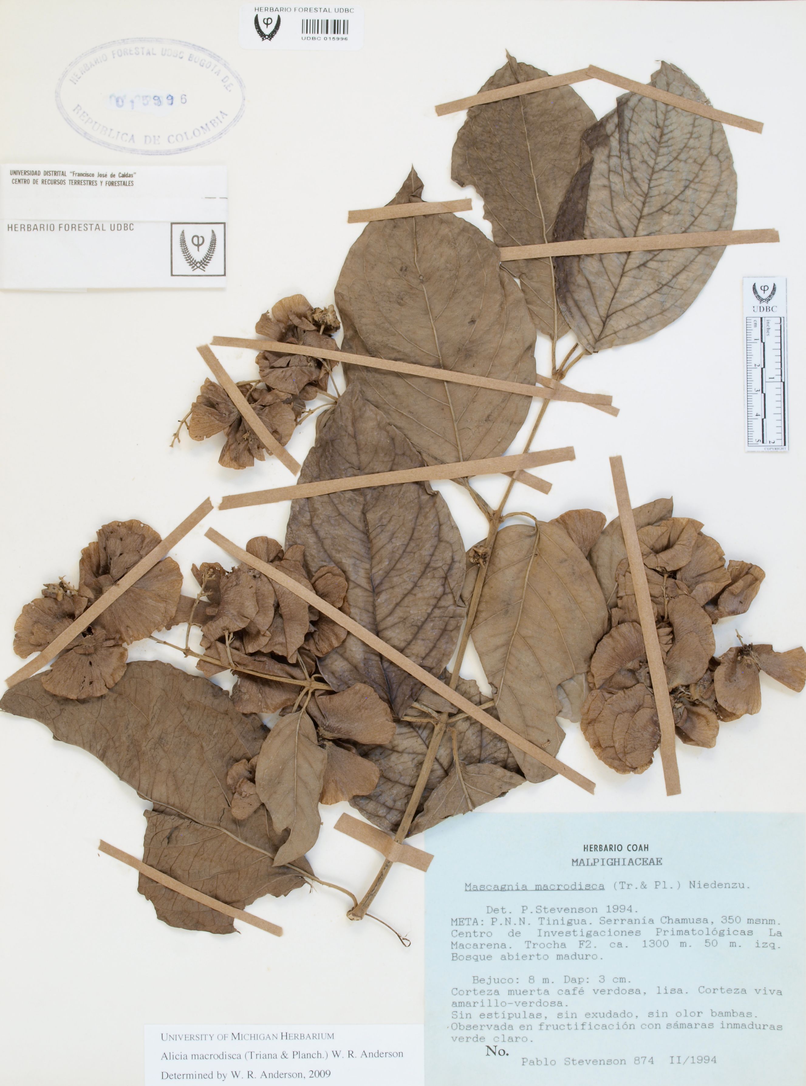 Fotografía del ejemplar Stevenson, P. 874, determinado como Alicia macrodisca en el año 2009
