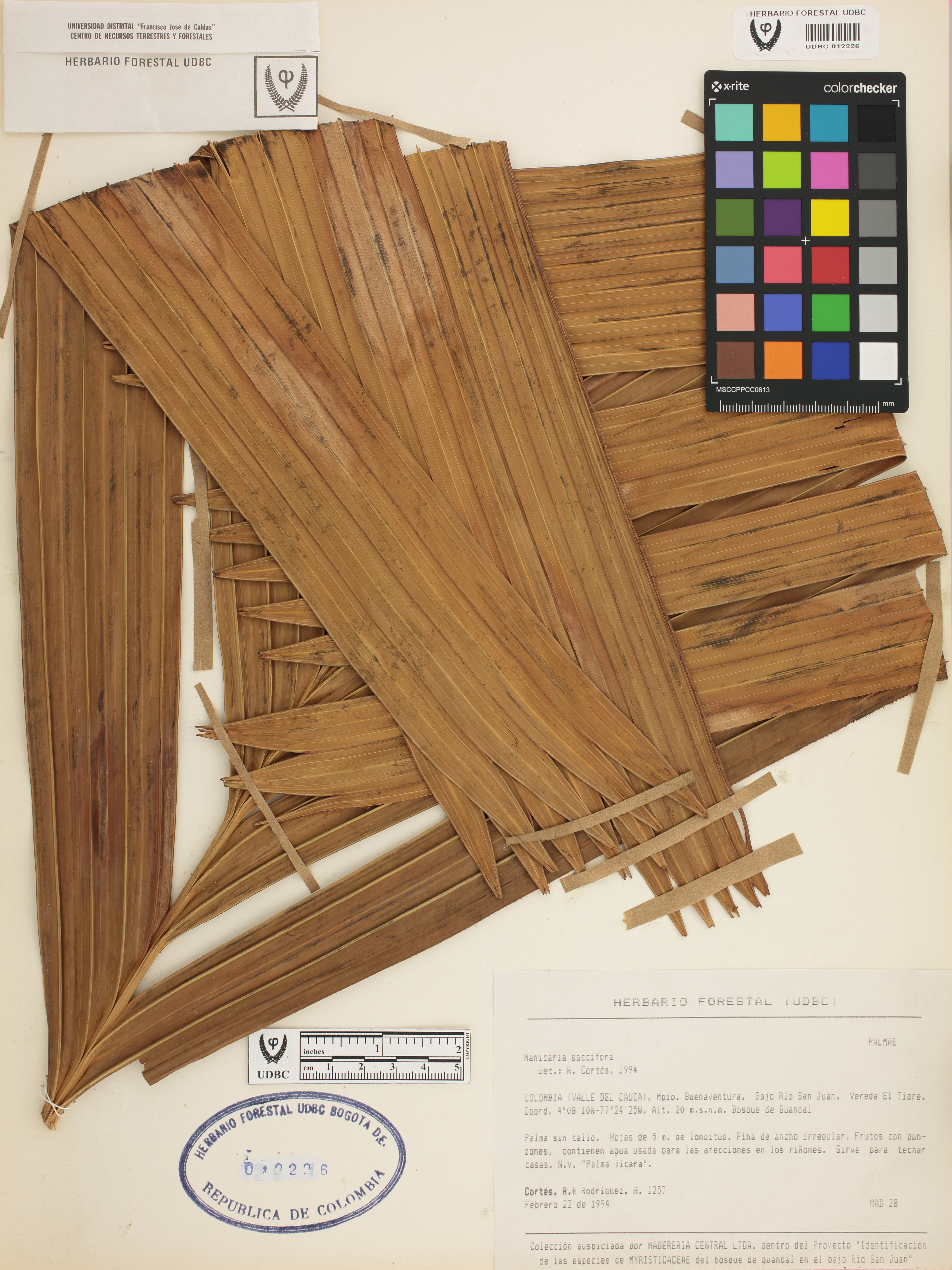 | dc.description | Fotografía del ejemplar Cortés, R. 1257, determinado como Manicaria saccifera en el año 1994 | |