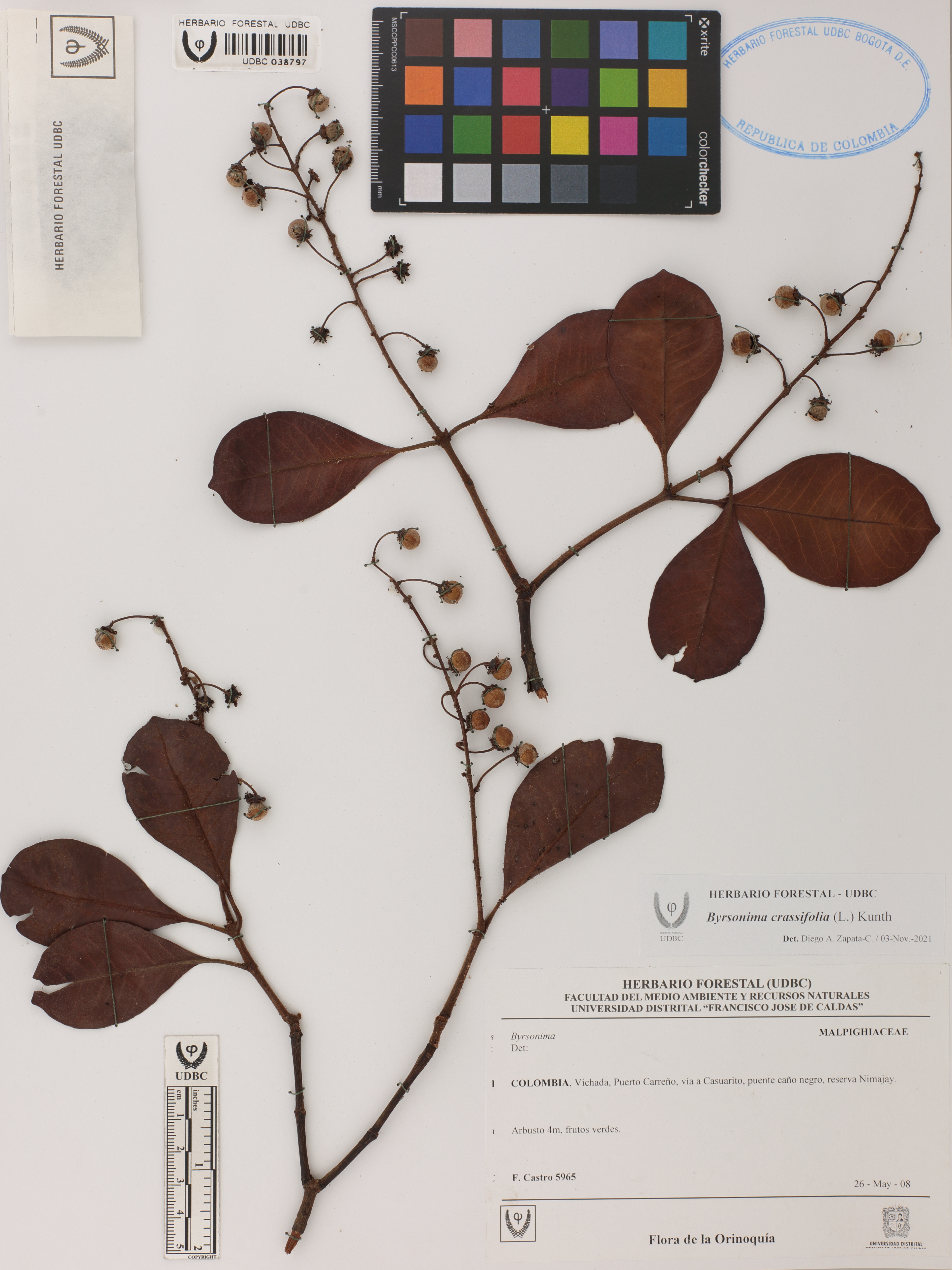 Fotografía del ejemplar Castro, F. 5965, determinado como Byrsonima crassifolia en el año 2021