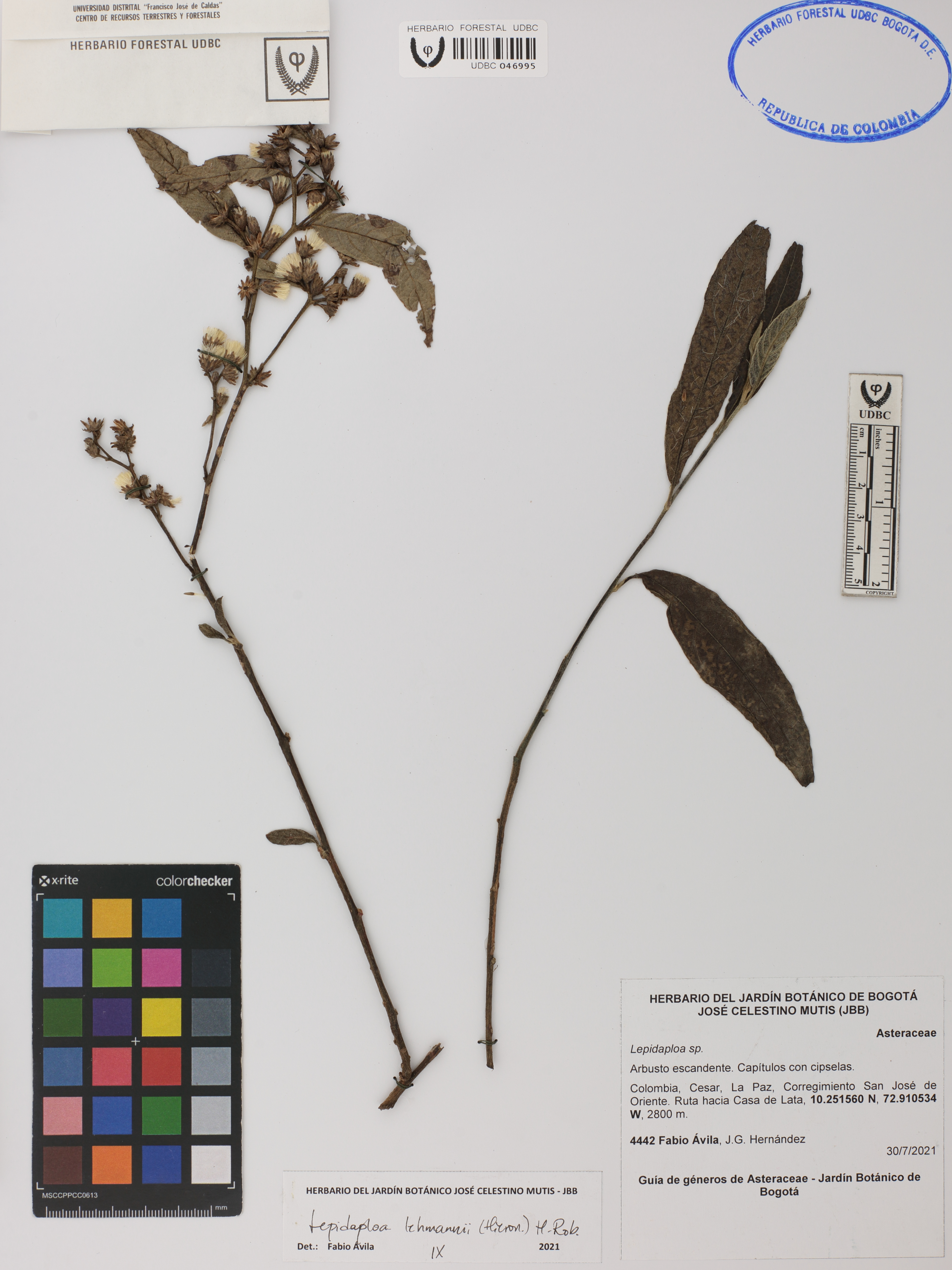 Fotografía del ejemplar Ávila, F. 4442, determinado como Lepidaploa lehmannii en el año 2021