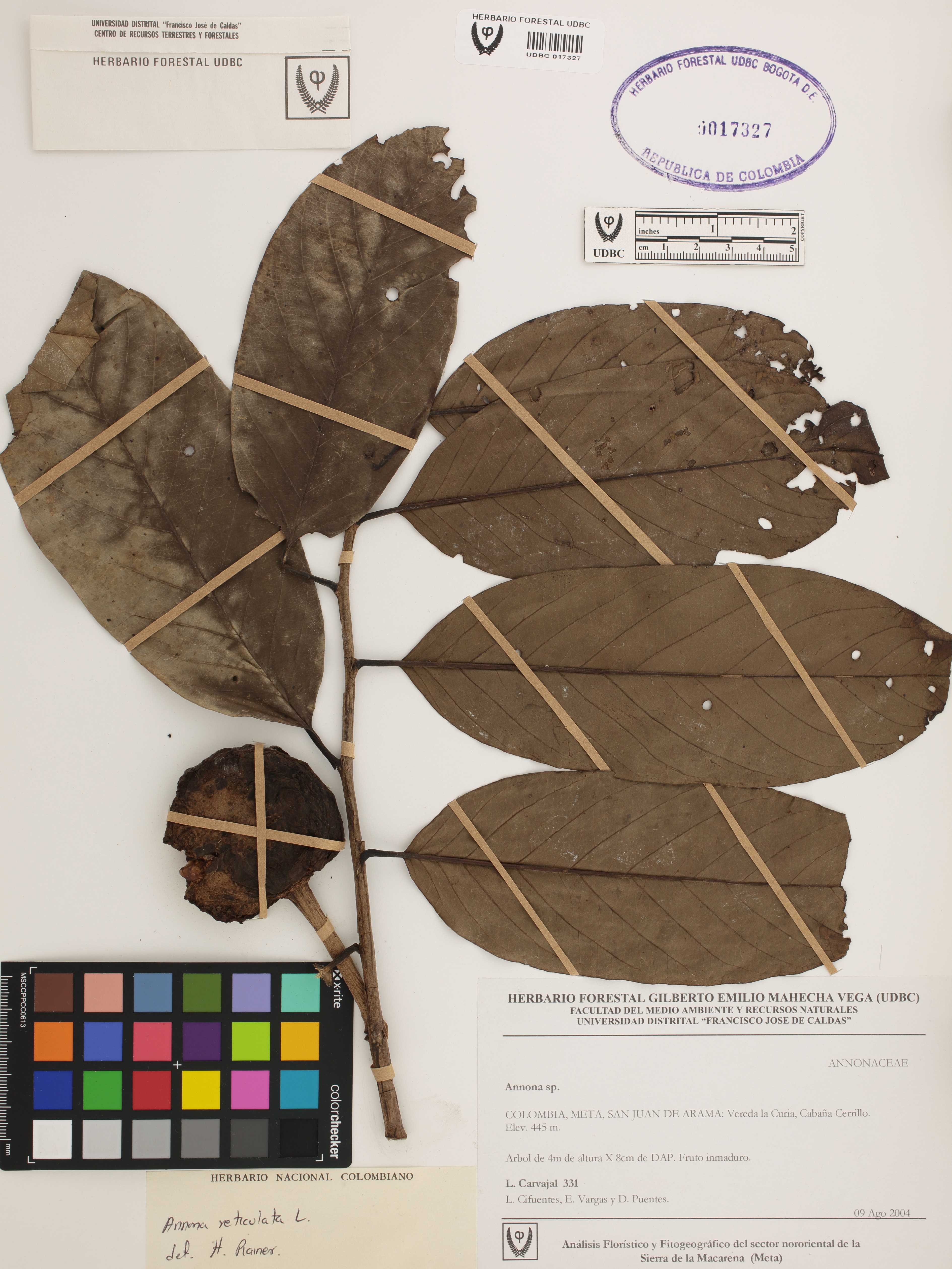 Fotografía del ejemplar Carvajal, L. 331, determinado como Annona reticulata