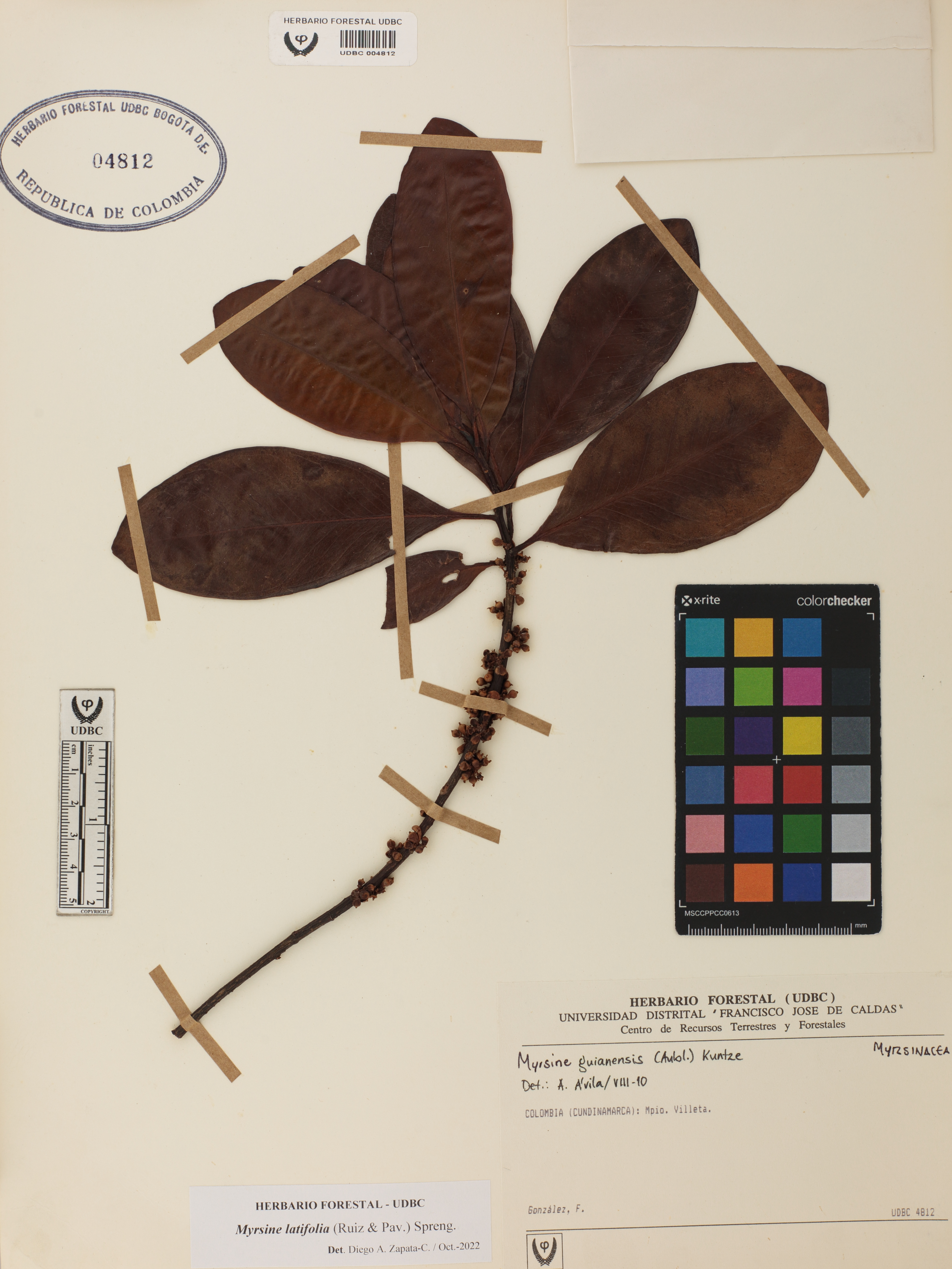 Fotografía del ejemplar González, F. 1, determinado como Myrsine latifolia en el año 2022