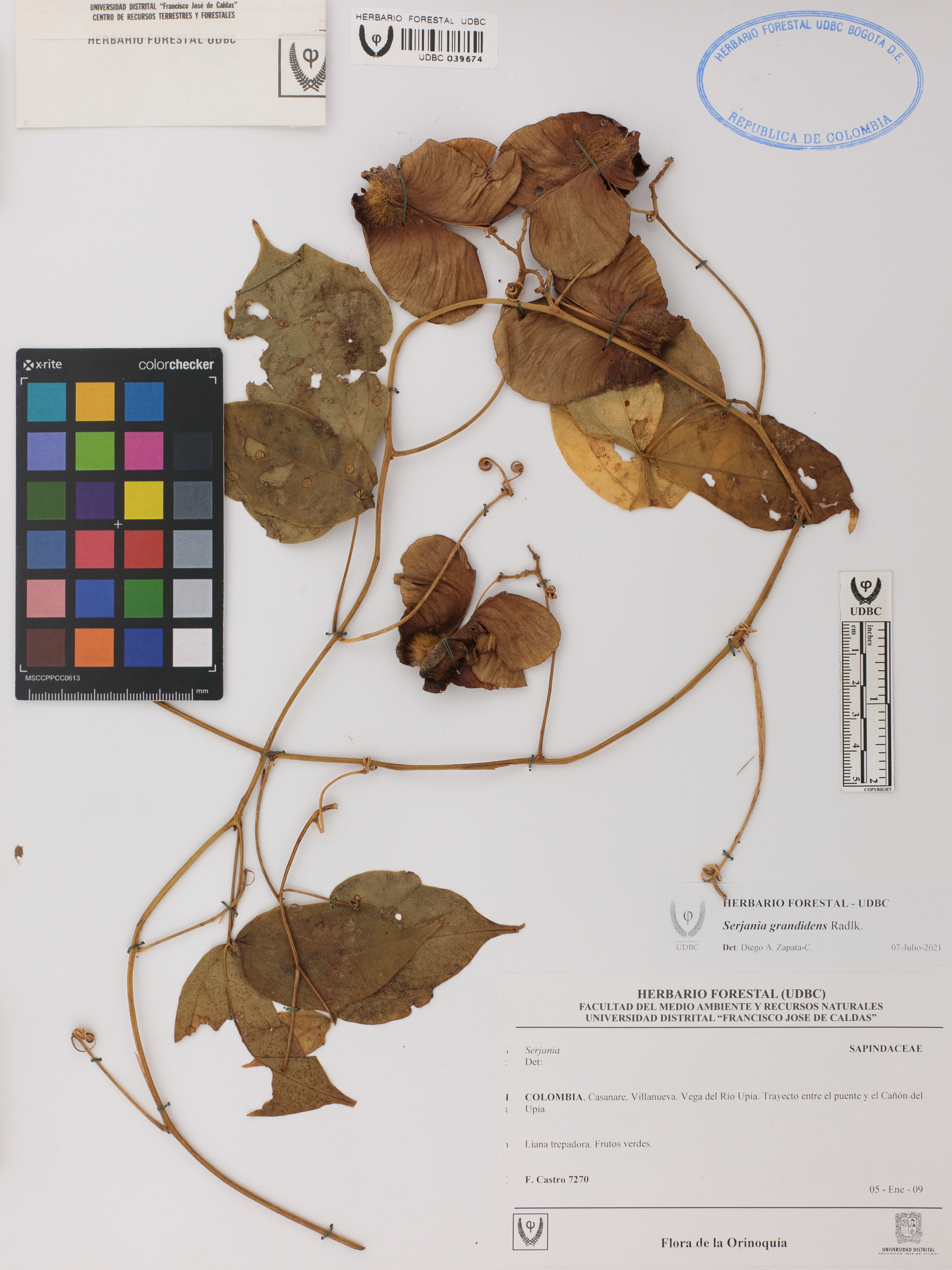 Fotografía del ejemplar Castro, F. 7270, determinado como Serjania grandidens en el año 2021