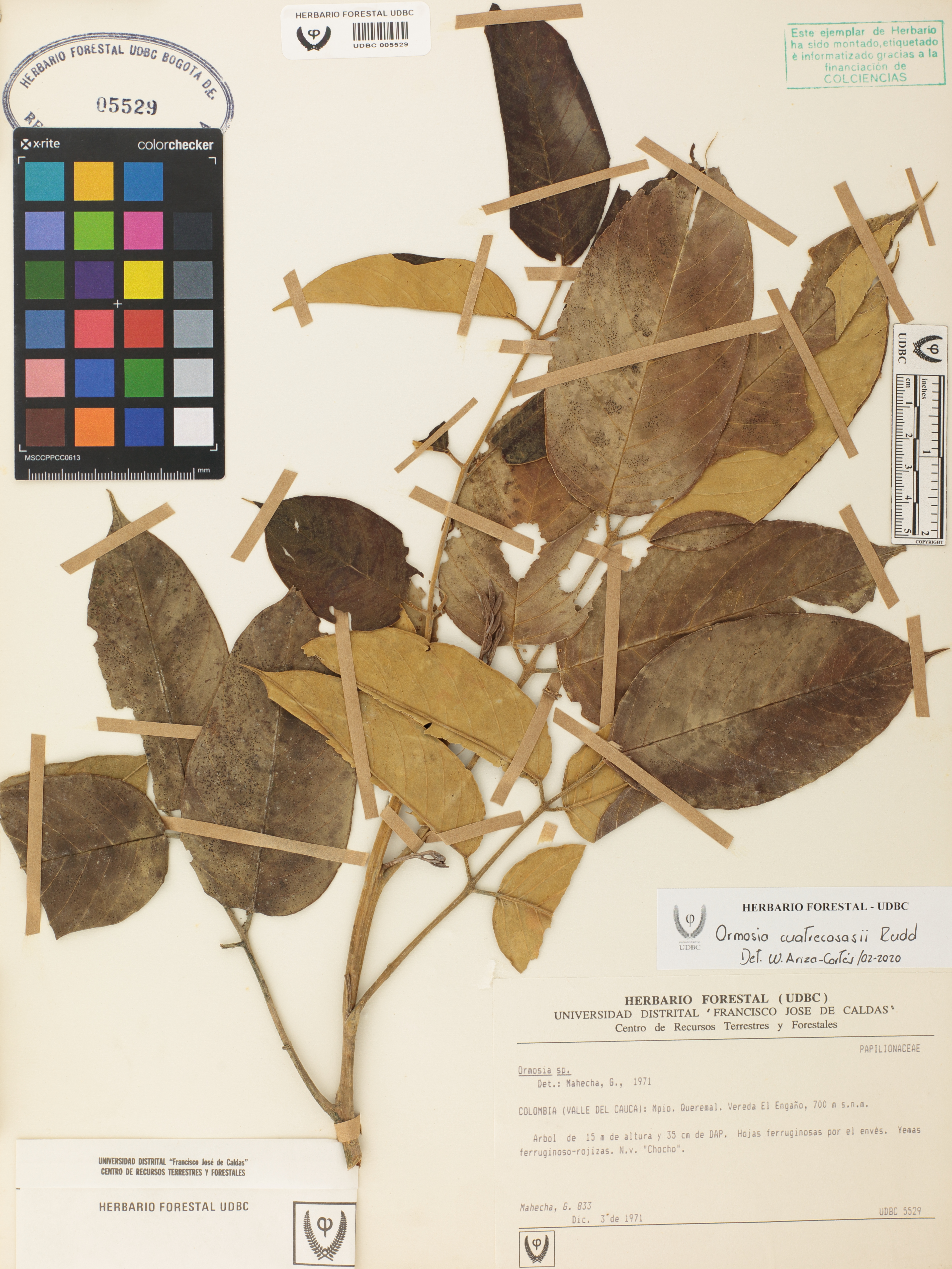 Fotografía del ejemplar Mahecha, G. 833, determinado como Ormosia cuatrecasasii en el año 2020