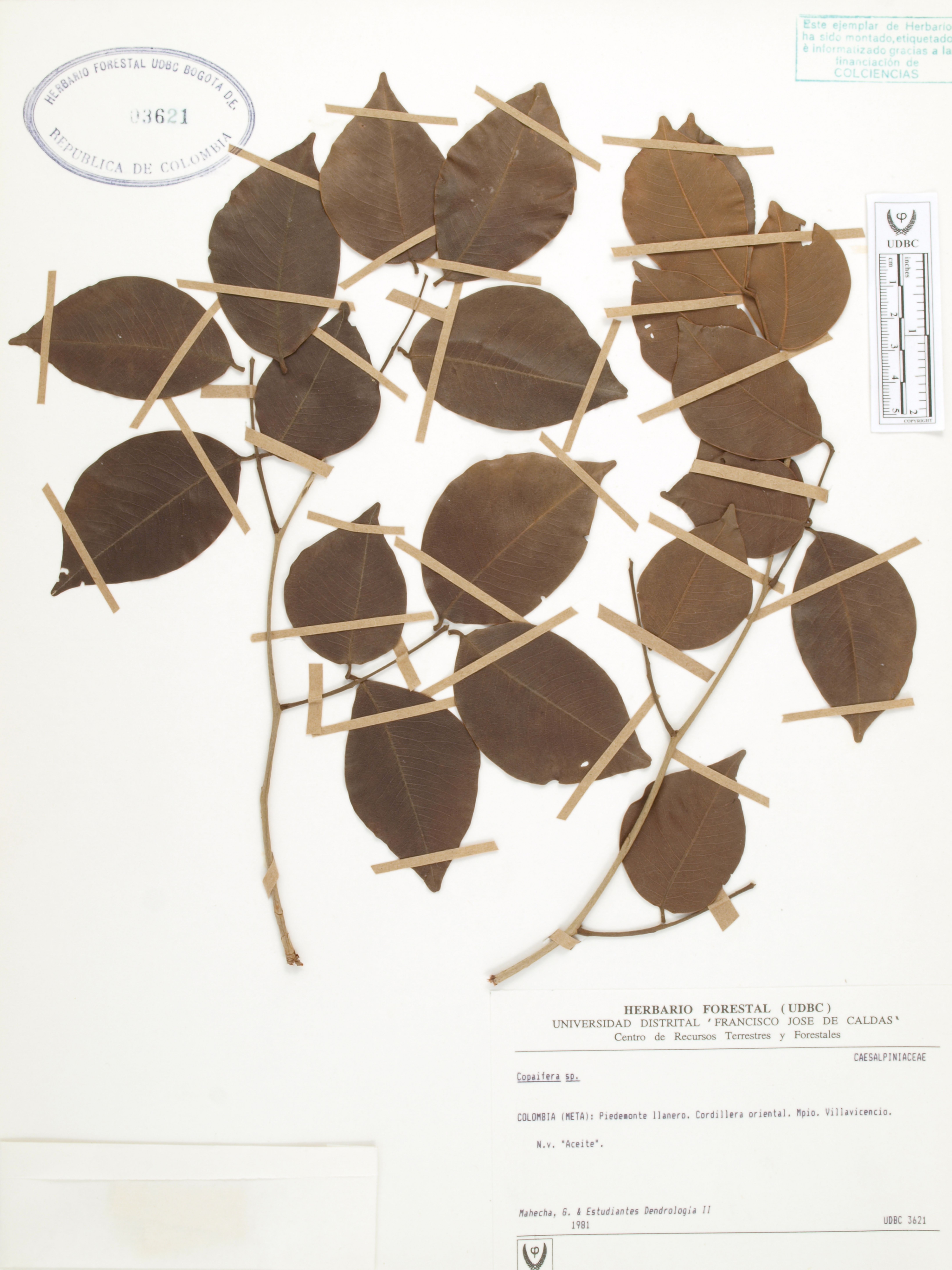 Fotografía del ejemplar Mahecha, G., determinado como Copaifera sp.
