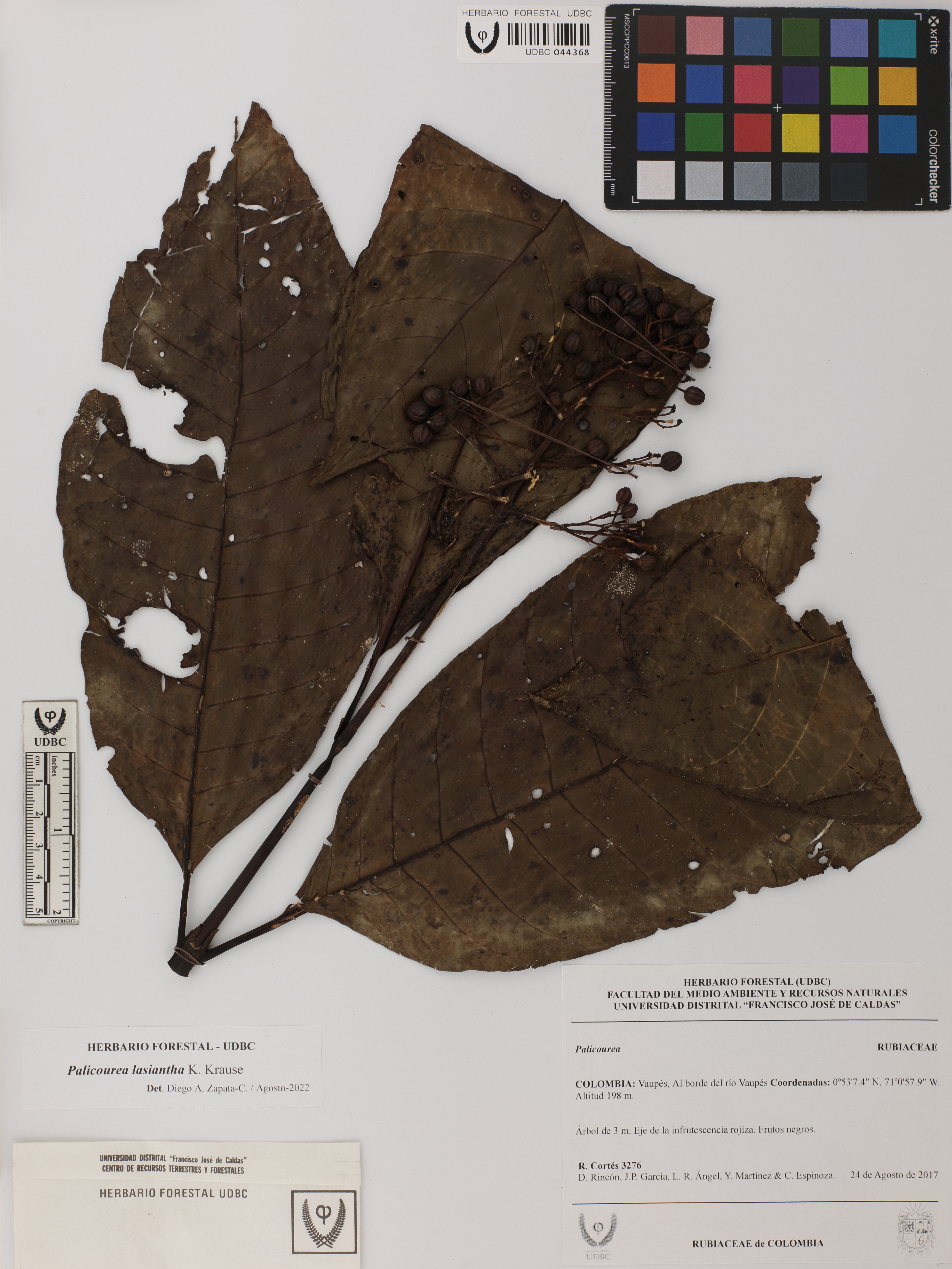 Fotografía del ejemplar Cortés, R. 3276, determinado como Palicourea lasiantha en el año 2022