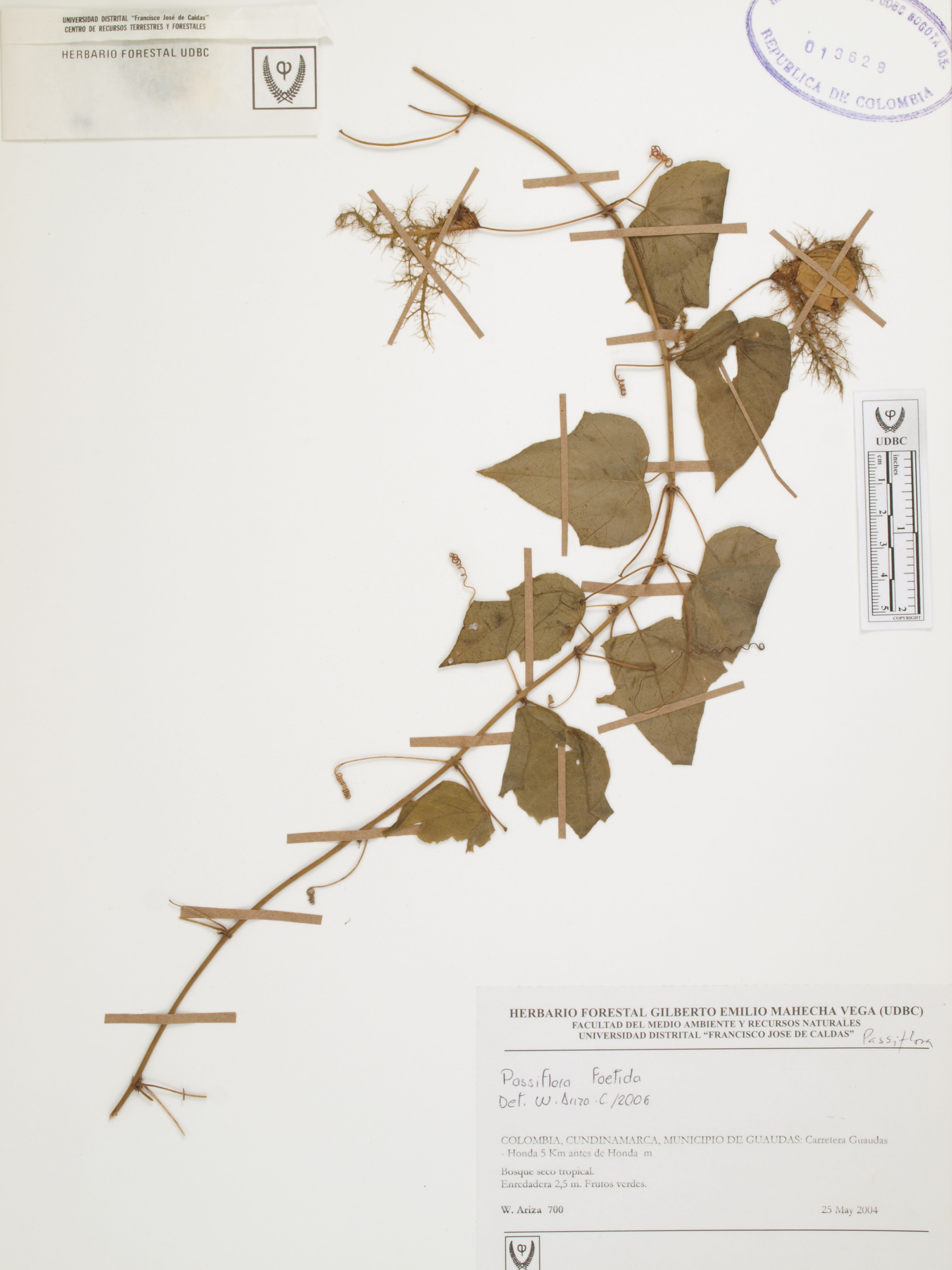 | dc.description | Fotografía del ejemplar Ariza, W. 700, determinado como Passiflora foetida en el año 2006 | |