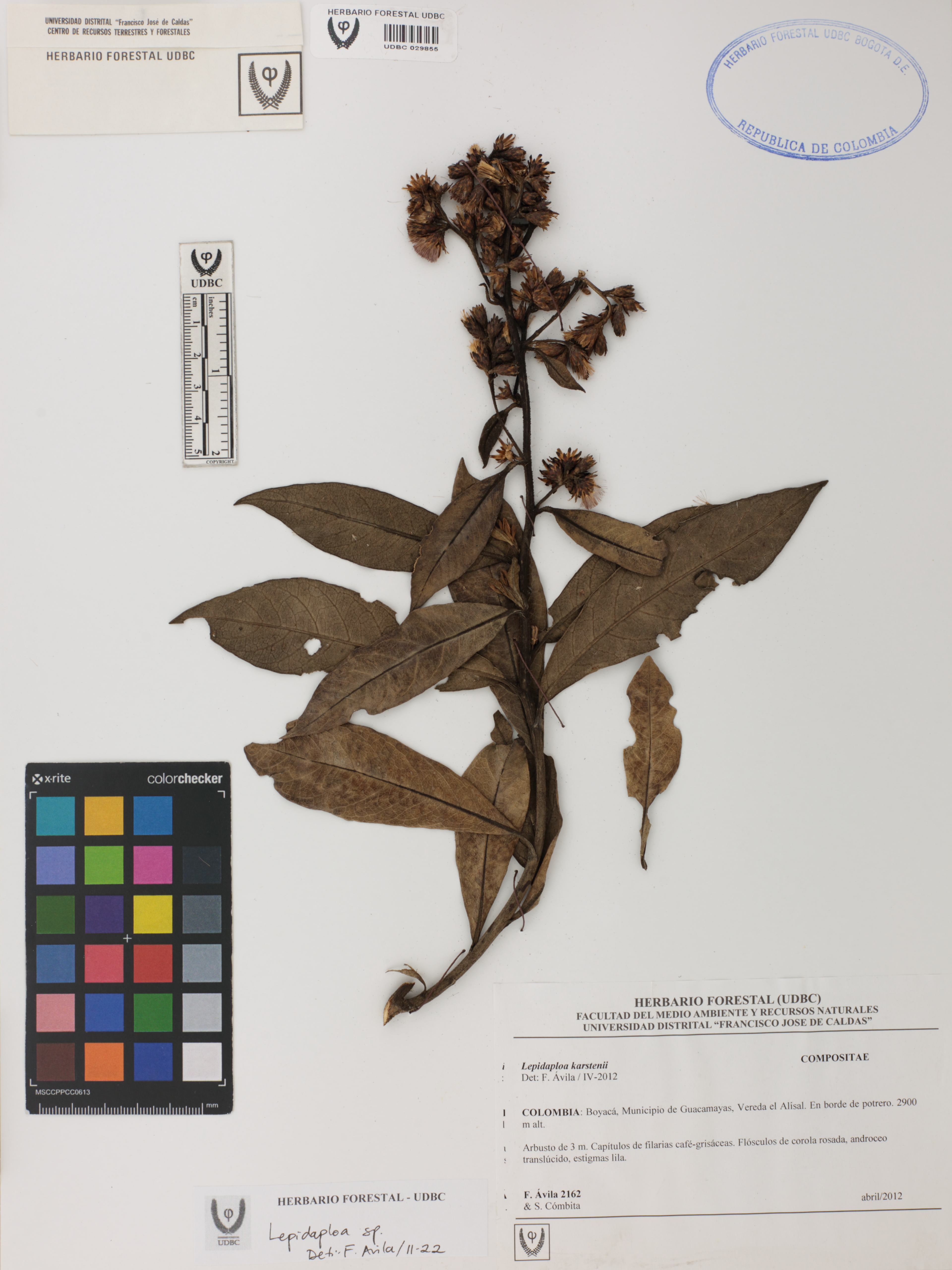 Fotografía del ejemplar Ávila, F. 2162, determinado como Lepidaploa sp. en el año 2022