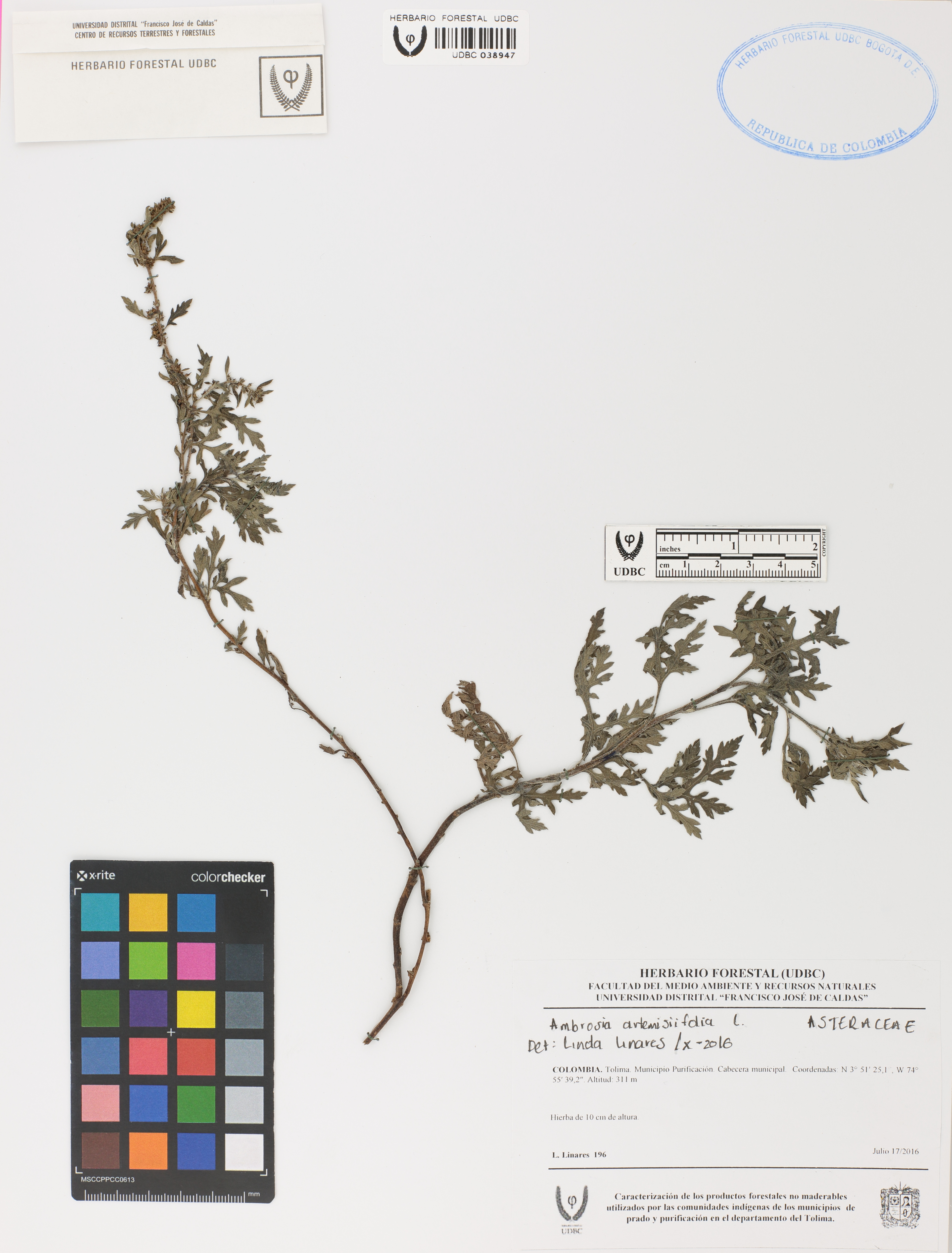 Fotografía del ejemplar Linares, L. 196, determinado como Ambrosia artemisiifolia en el año 2016