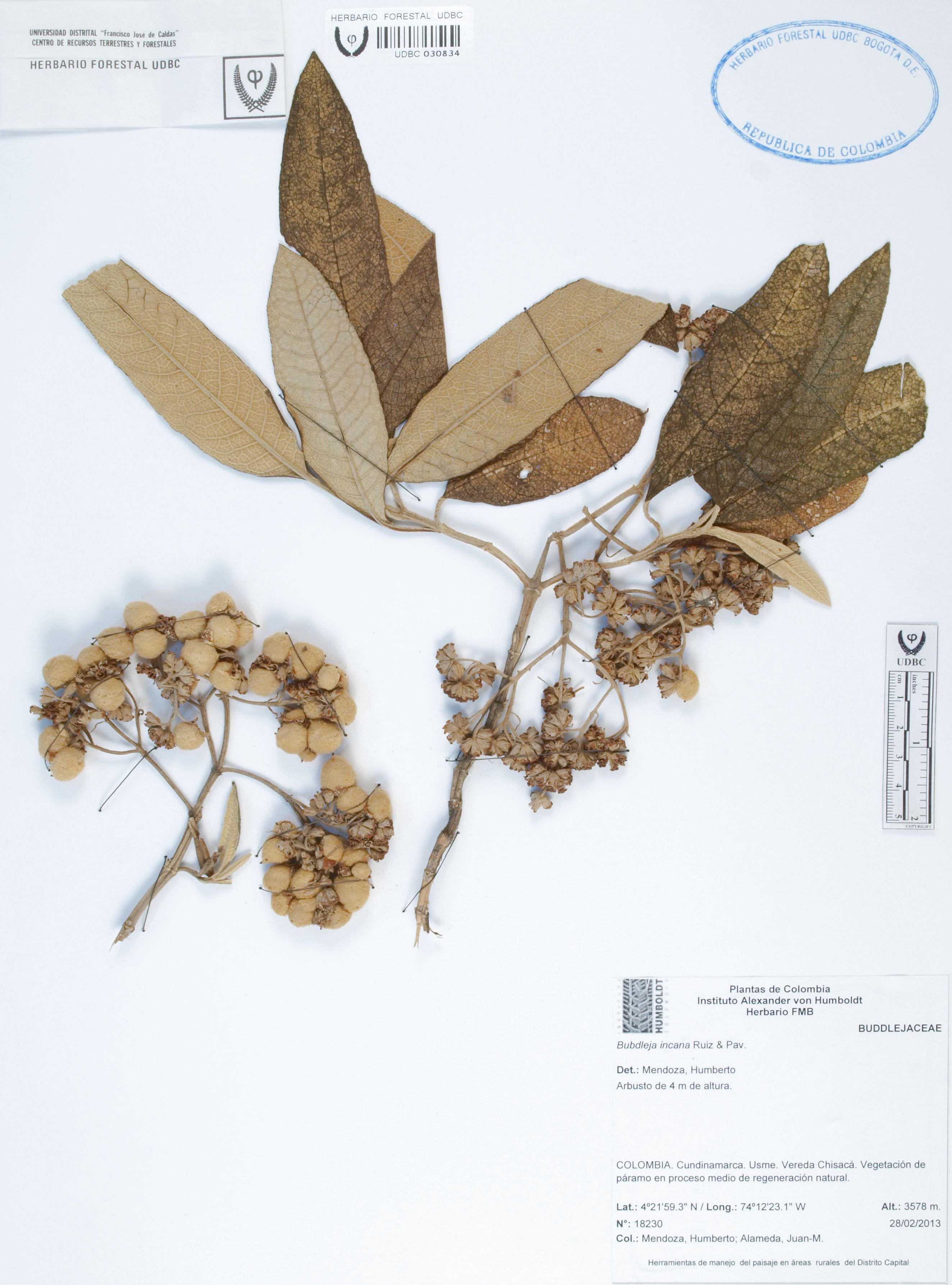 Fotografía del ejemplar Mendoza, H. 18230, determinado como Buddleja incana