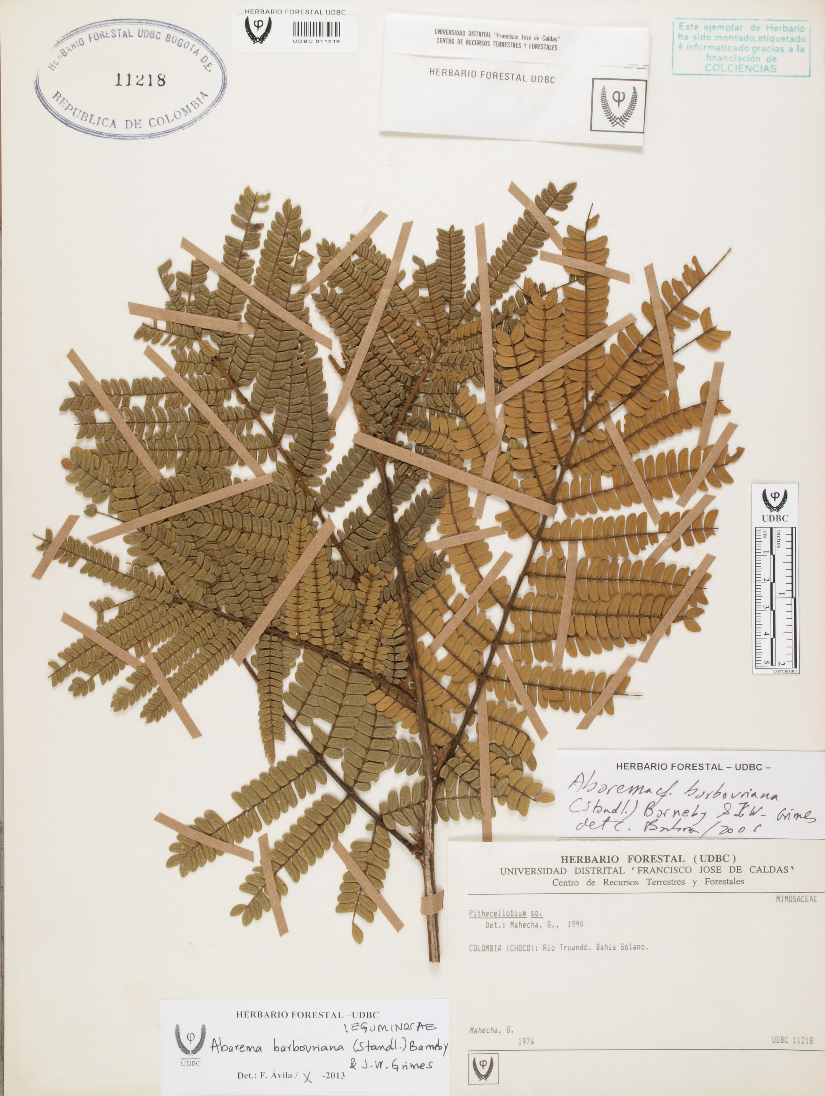 Fotografía del ejemplar Mahecha, G., determinado como Abarema barbouriana en el año 2006