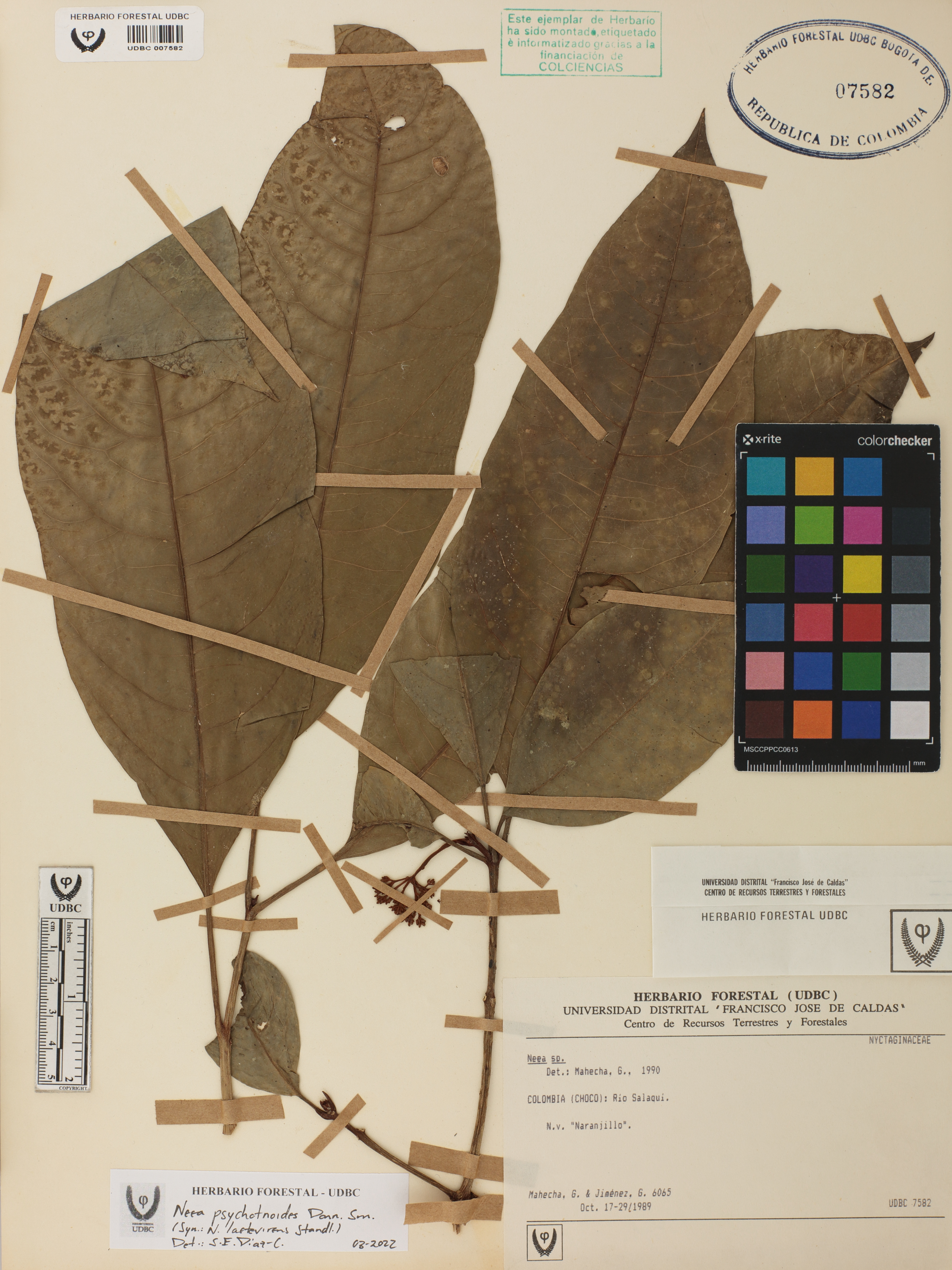Fotografía del ejemplar Mahecha, G. 6065, determinado como Neea psychotrioides en el año 2022