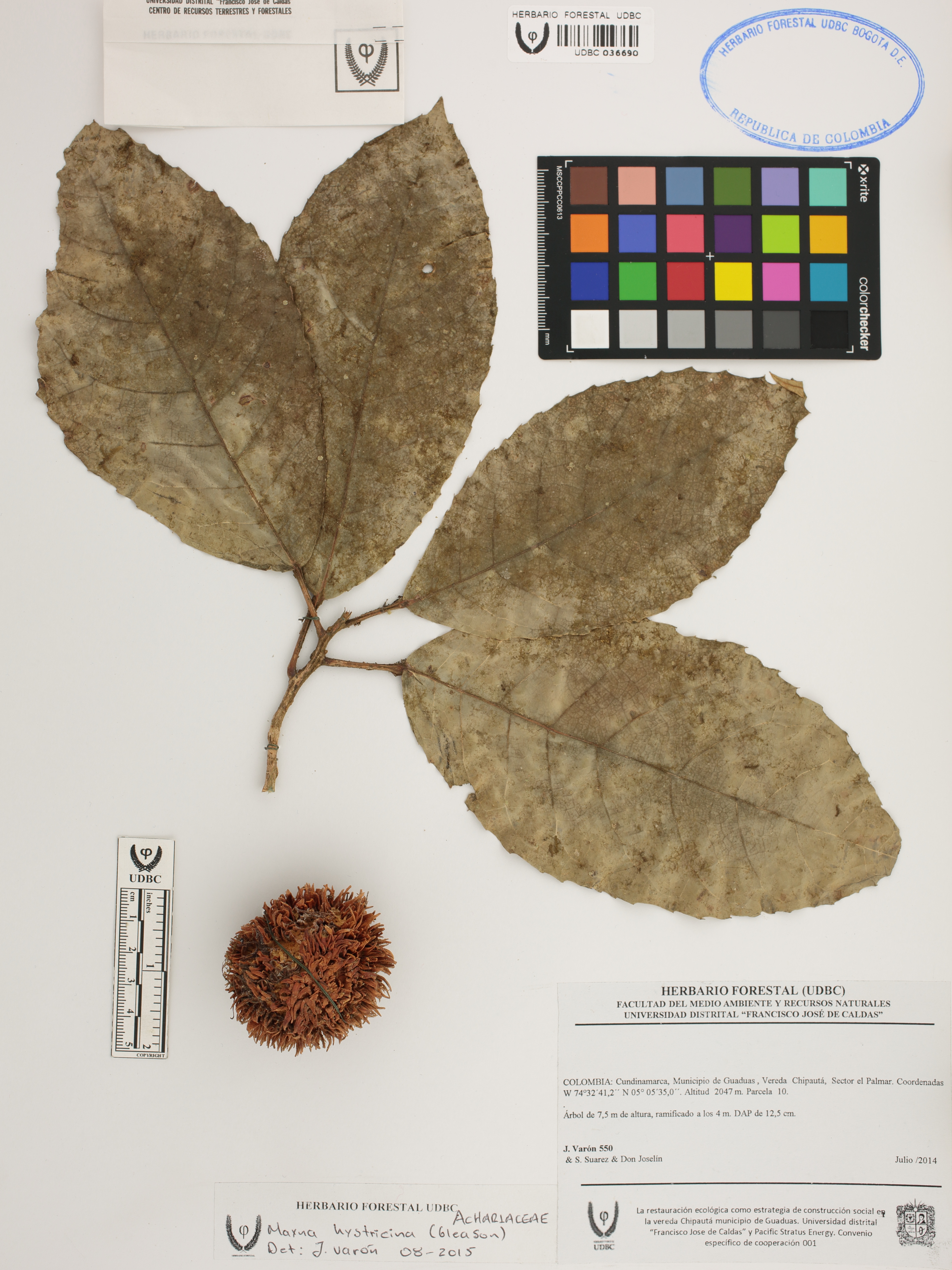 Fotografía del ejemplar Varón, J. 550, determinado como Mayna hystricina en el año 2015