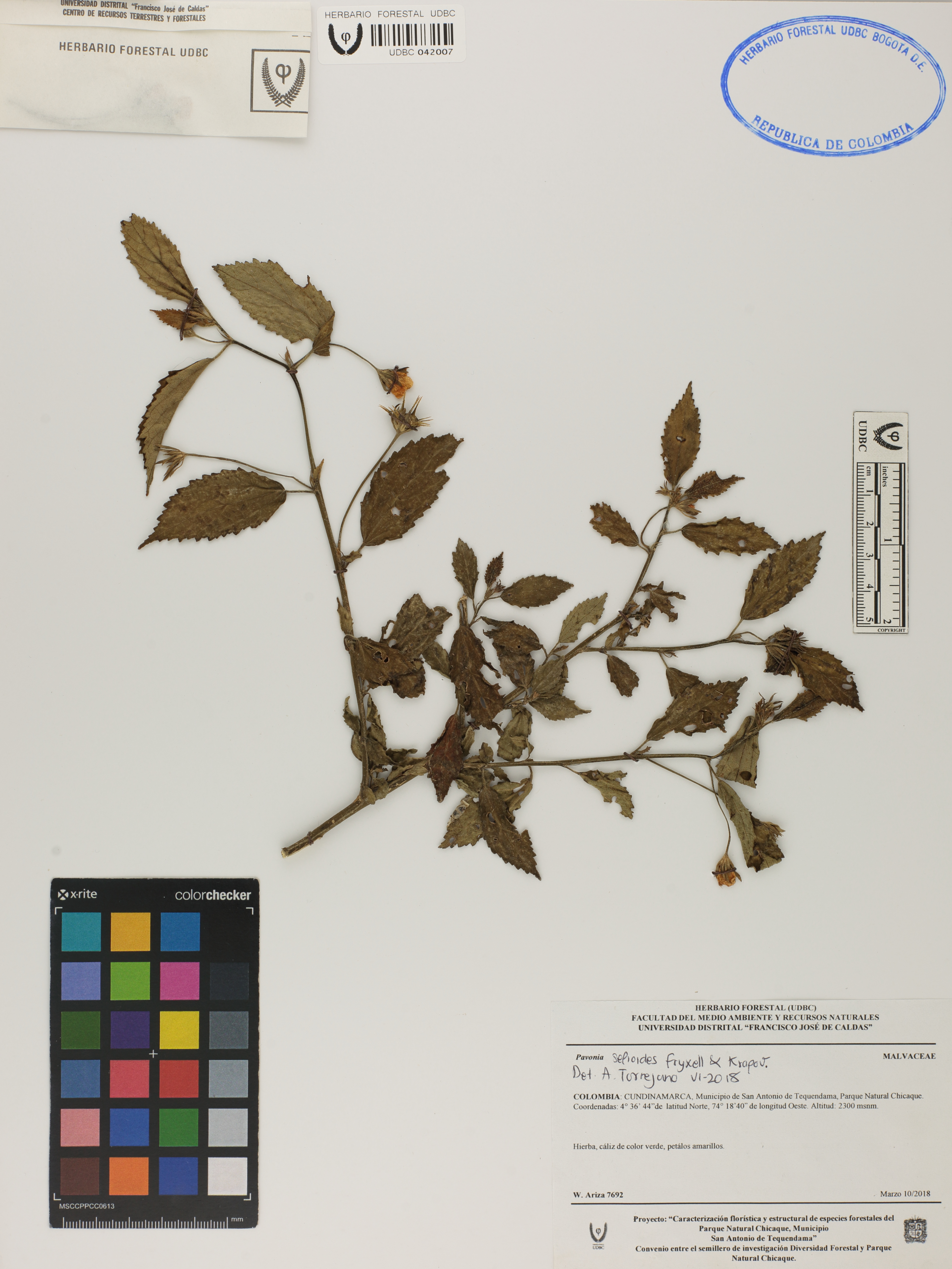 Fotografía del ejemplar Ariza, W. 7692, determinado como Pavonia sepioides en el año 2018
