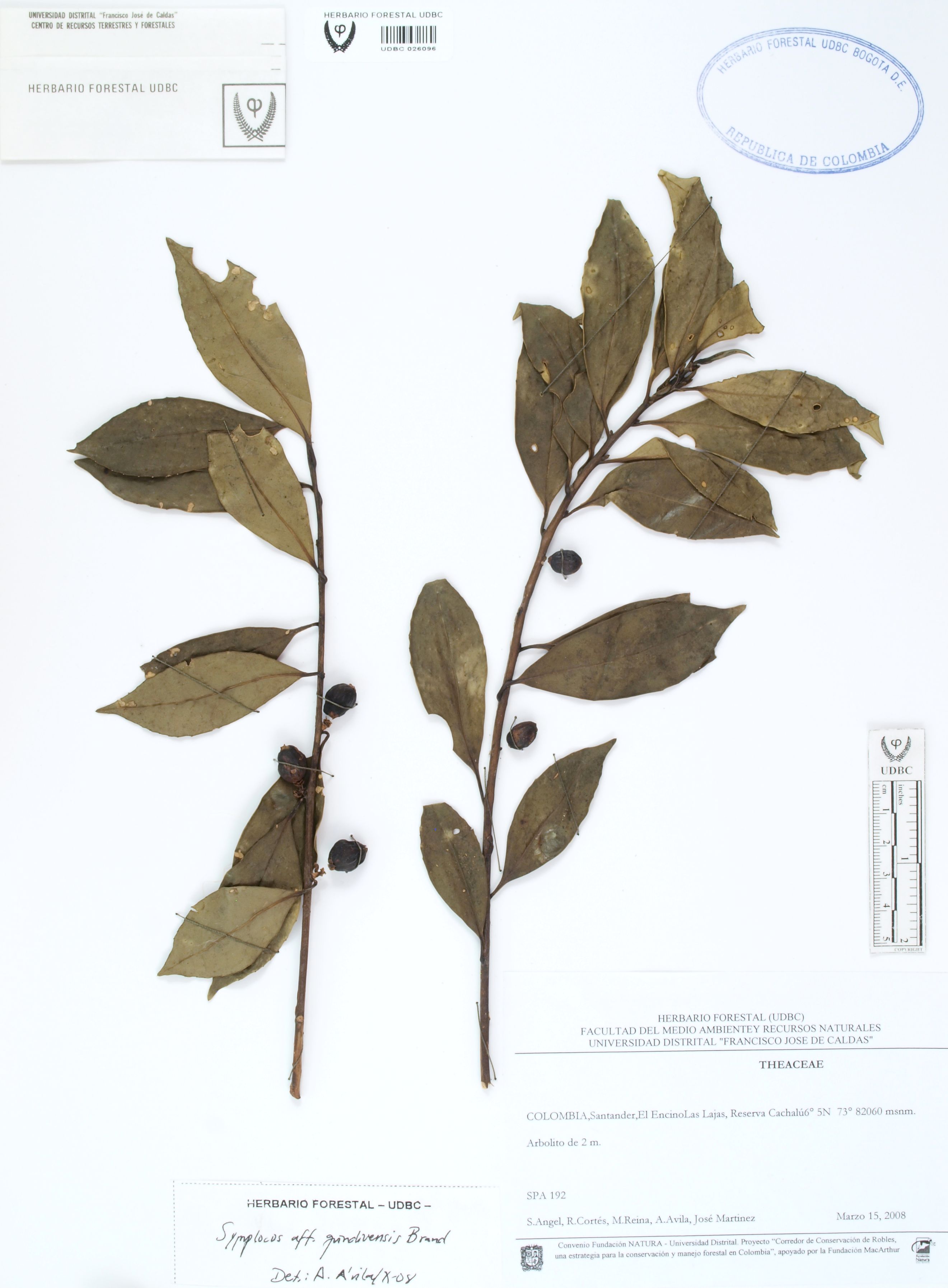 | dc.description | Fotografía del ejemplar Ángel, S. 192, determinado como Symplocos quindiuensis en el año 2008 | |