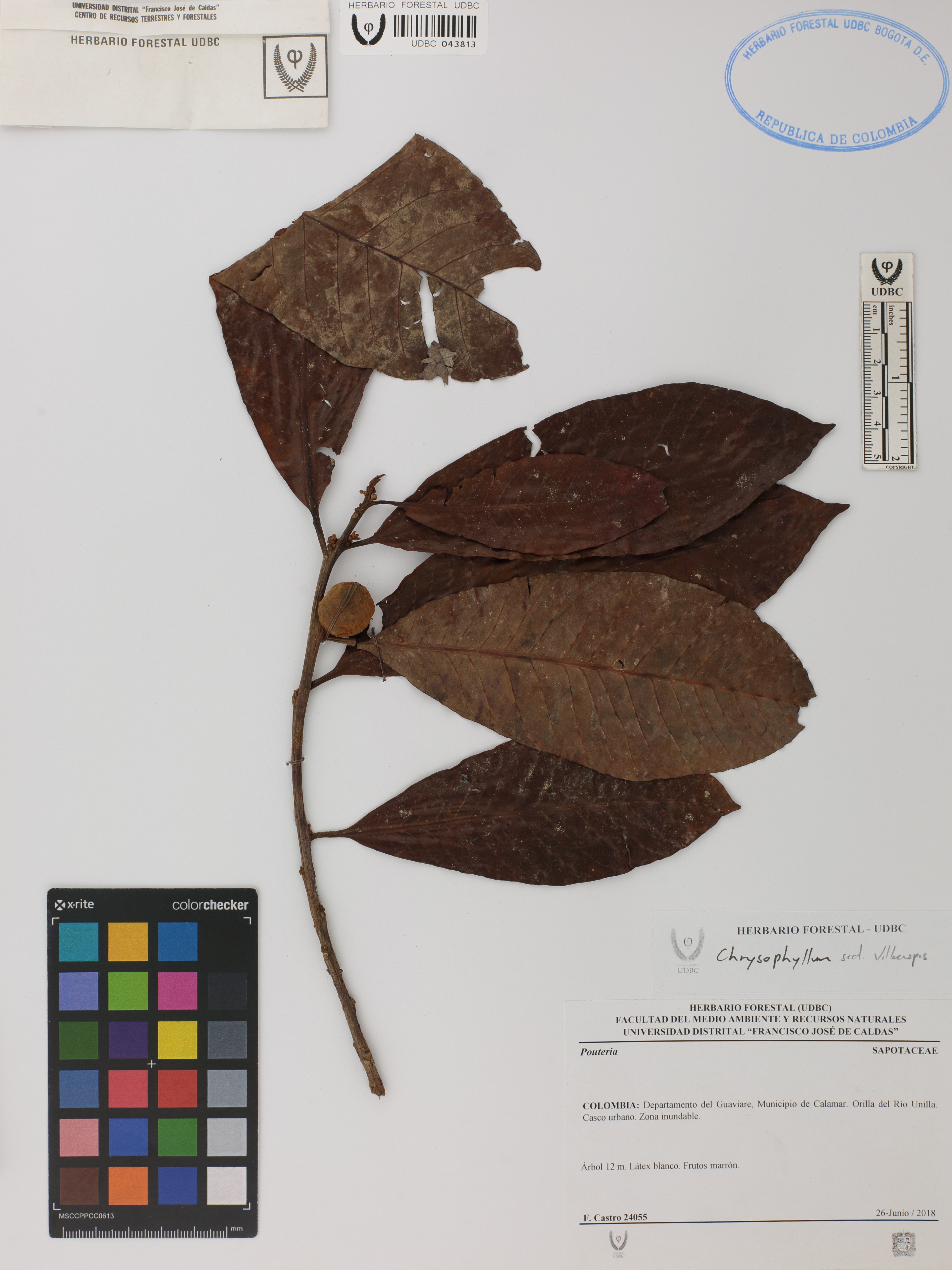 Fotografía del ejemplar Castro, F. 24055, determinado como Chrysophyllum sp.