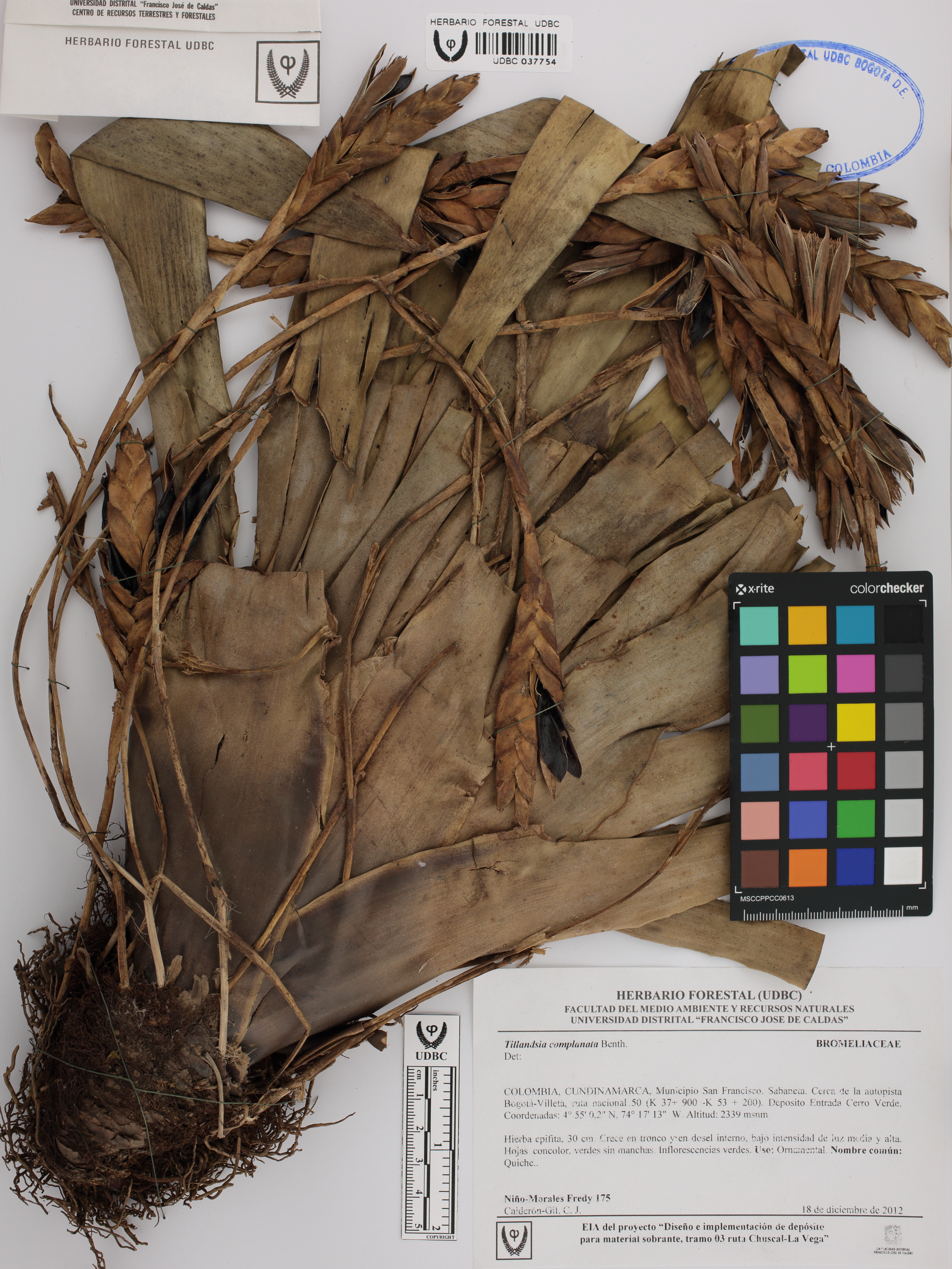 Fotografía del ejemplar Niño-Morales, F. 175, determinado como Tillandsia complanata
