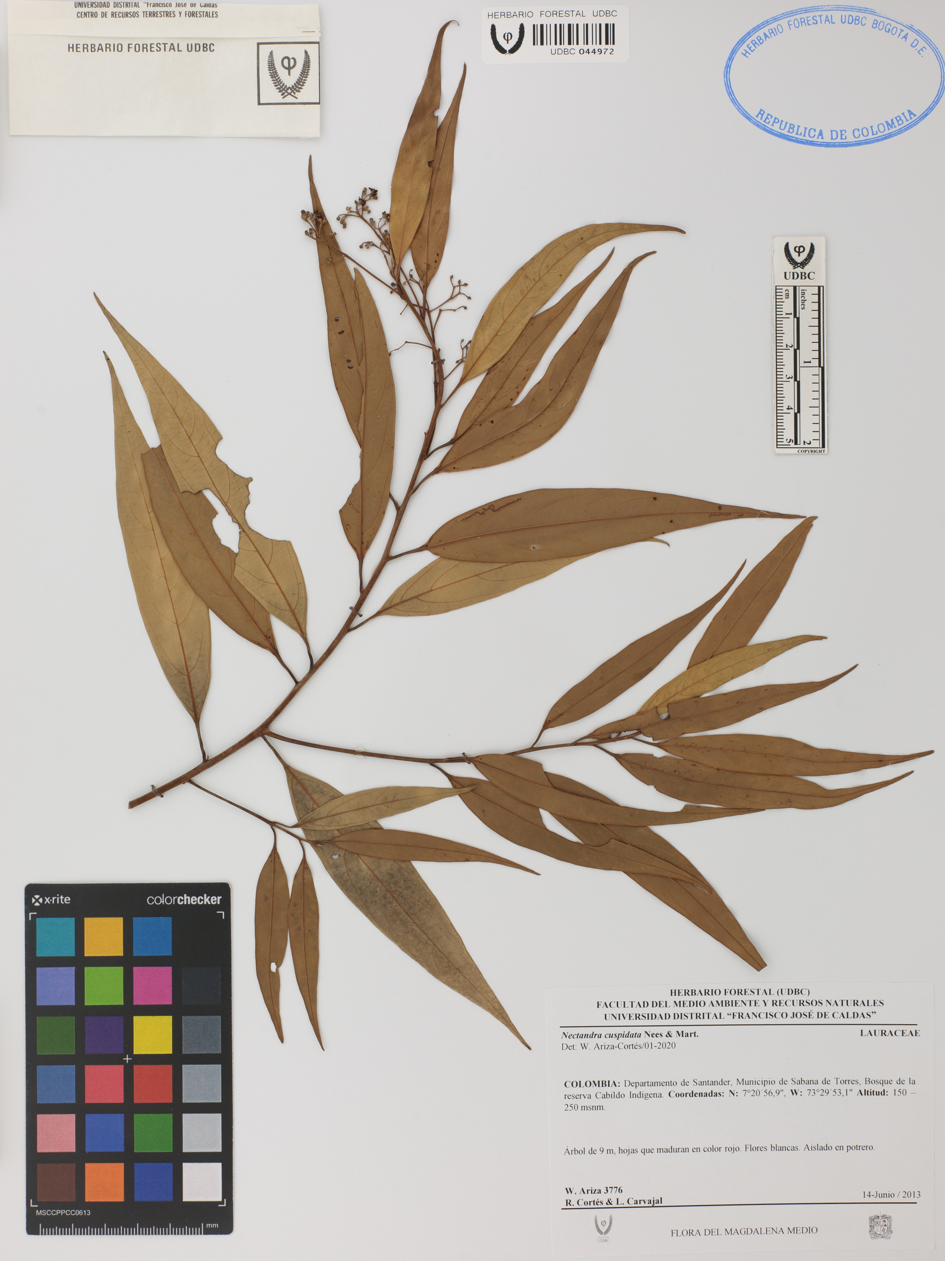 | dc.description | Fotografía del ejemplar Ariza, W. 3776, determinado como Nectandra cuspidata en el año 2020 | |