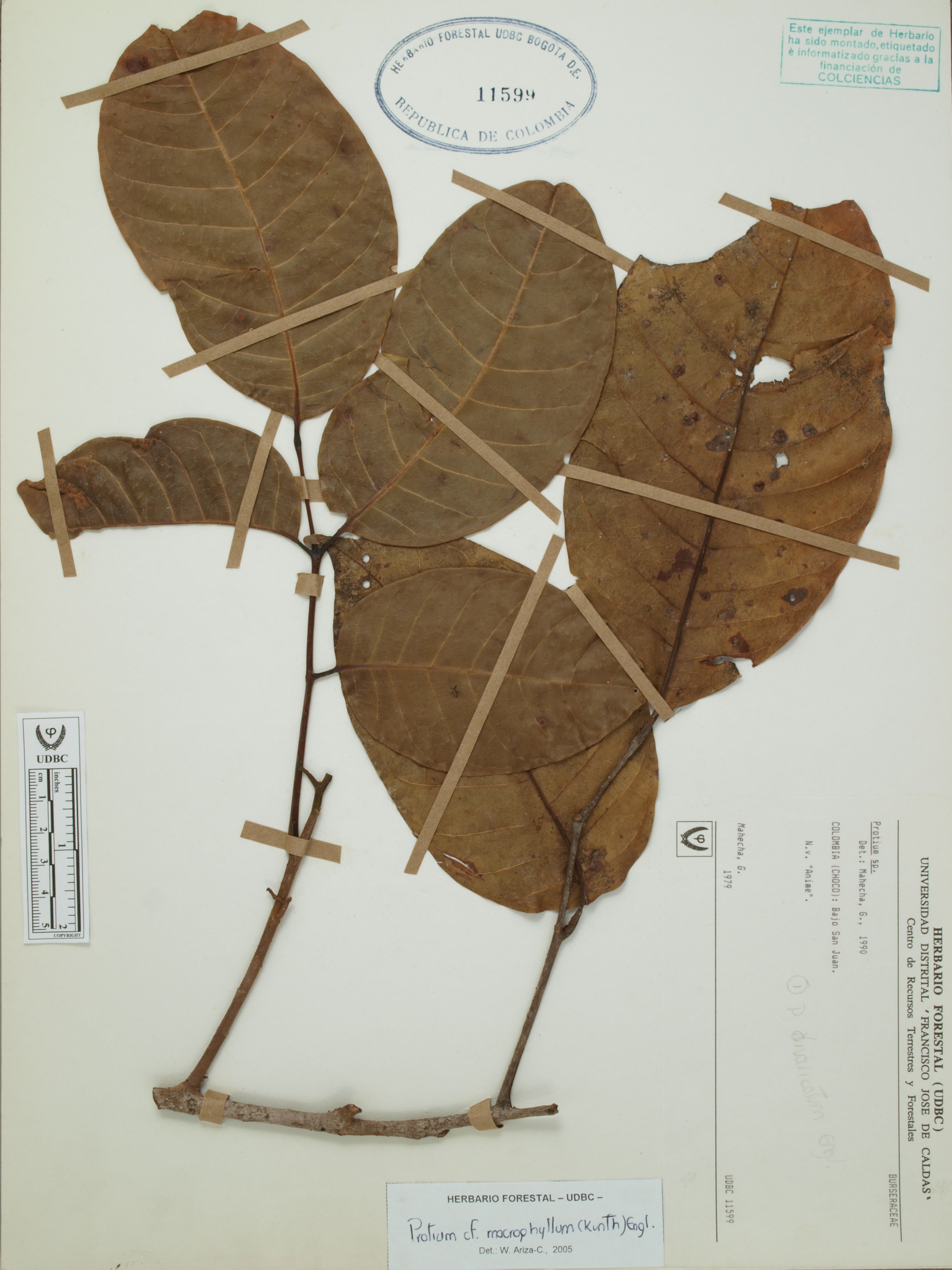 Fotografía del ejemplar Mahecha, G., determinado como Protium macrophyllum en el año 2005