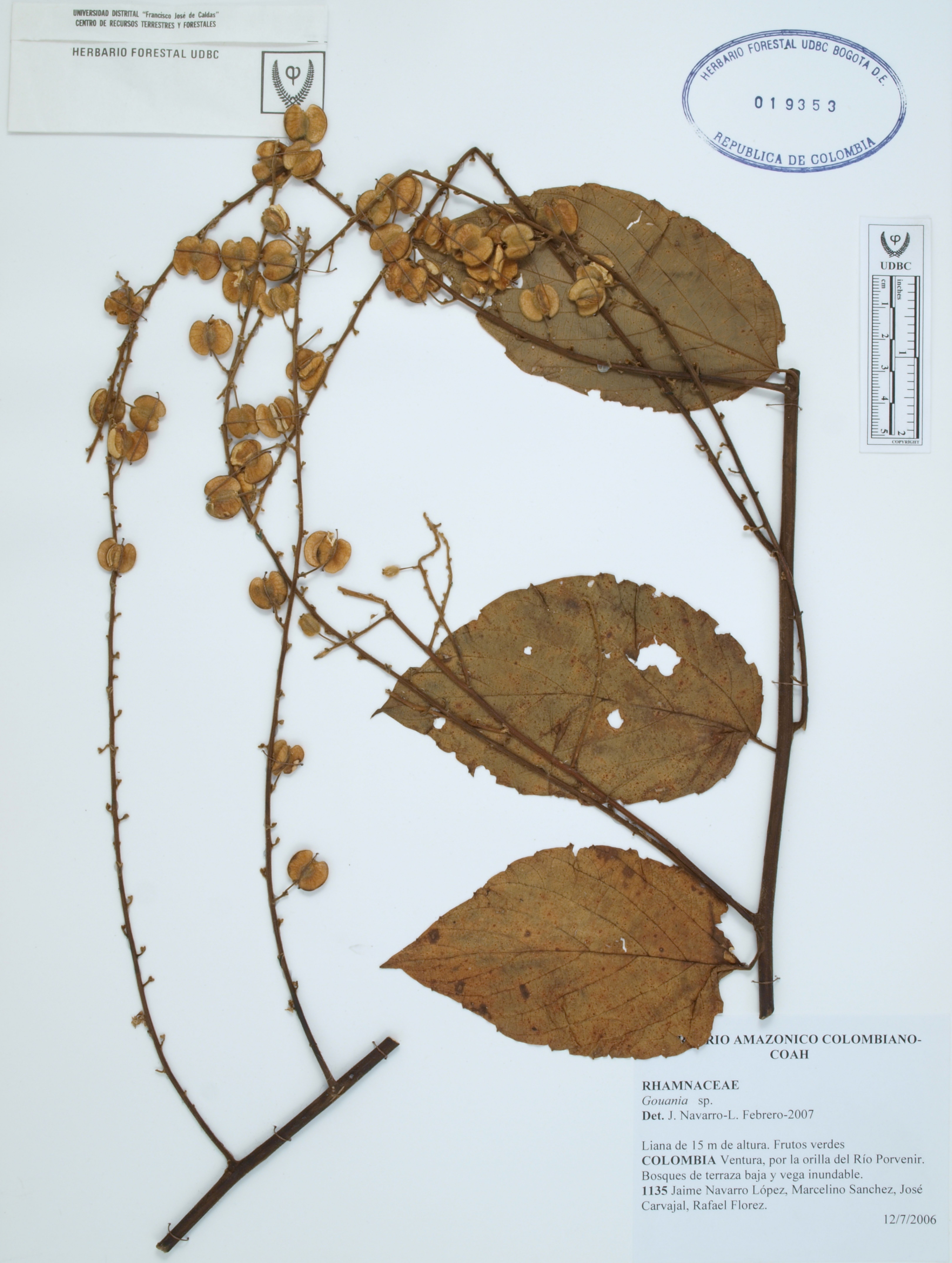 Fotografía del ejemplar Navarro, J. 1135, determinado como Gouania sp. en el año 2007