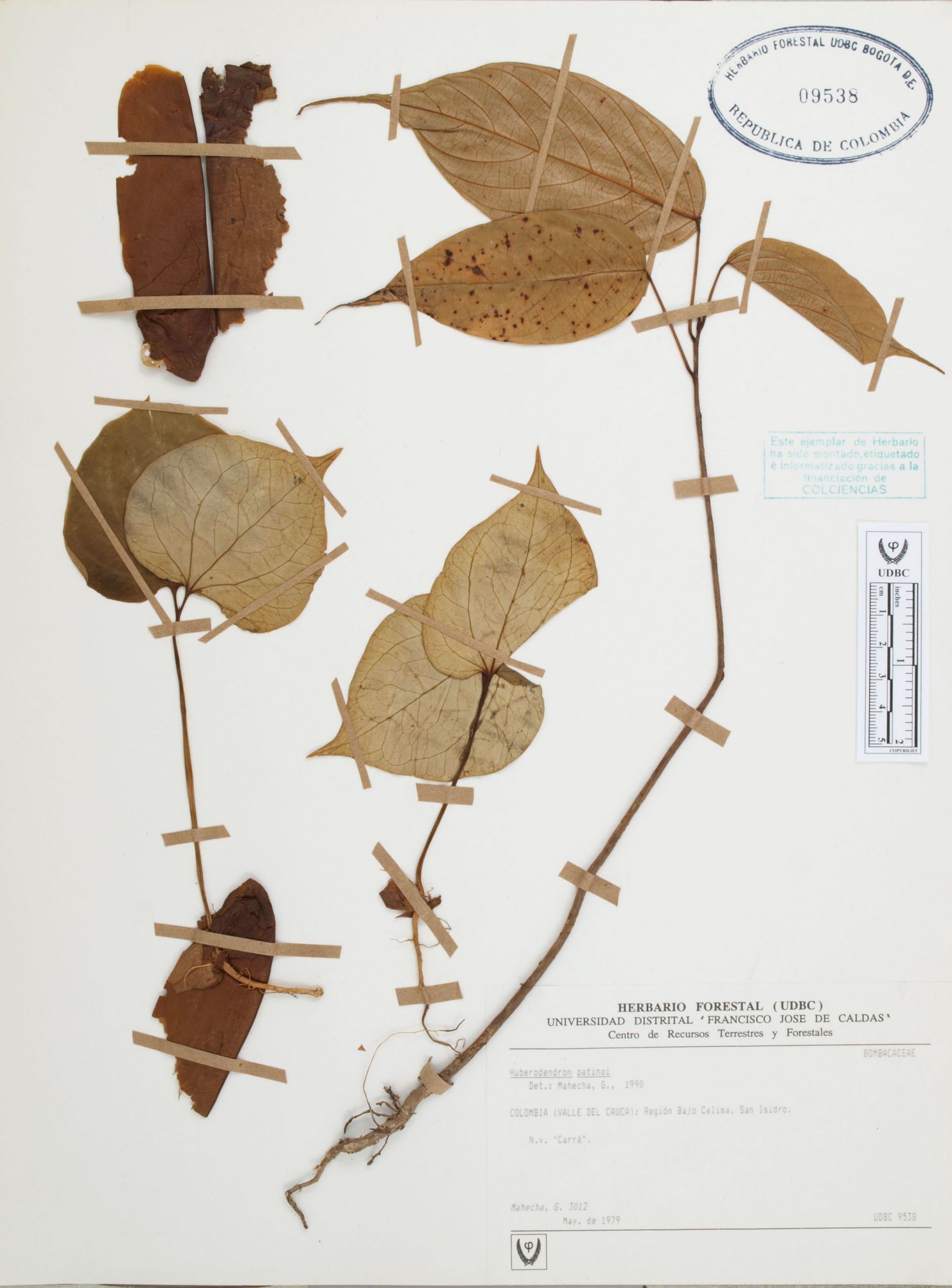 Fotografía del ejemplar Mahecha, G. 3012, determinado como Huberodendron patinoi en el año 1990