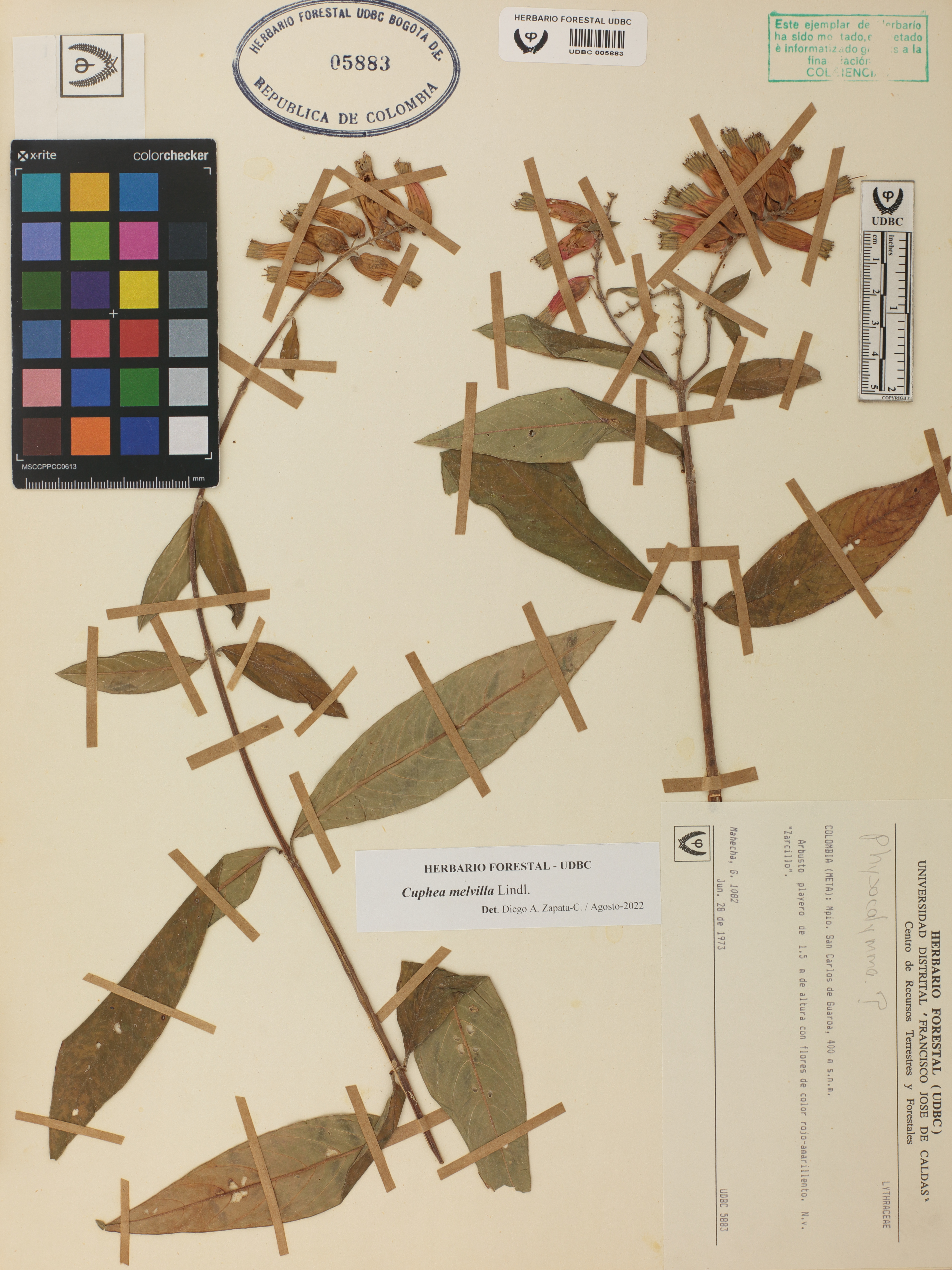 Fotografía del ejemplar Mahecha, G. 1082, determinado como Cuphea melvilla en el año 2022