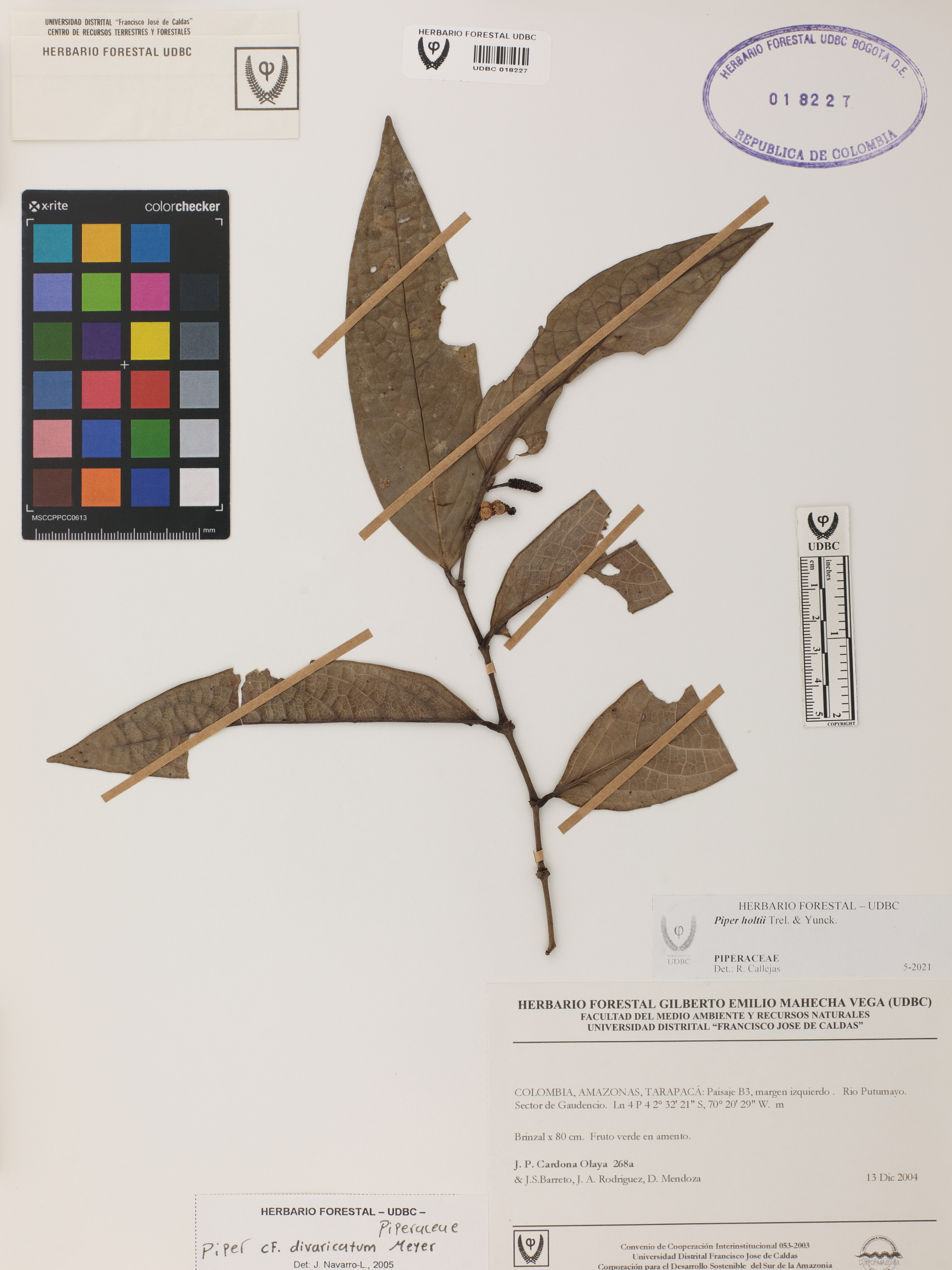 Fotografía del ejemplar Cardona, J. 268, determinado como Piper holtii en el año 2021