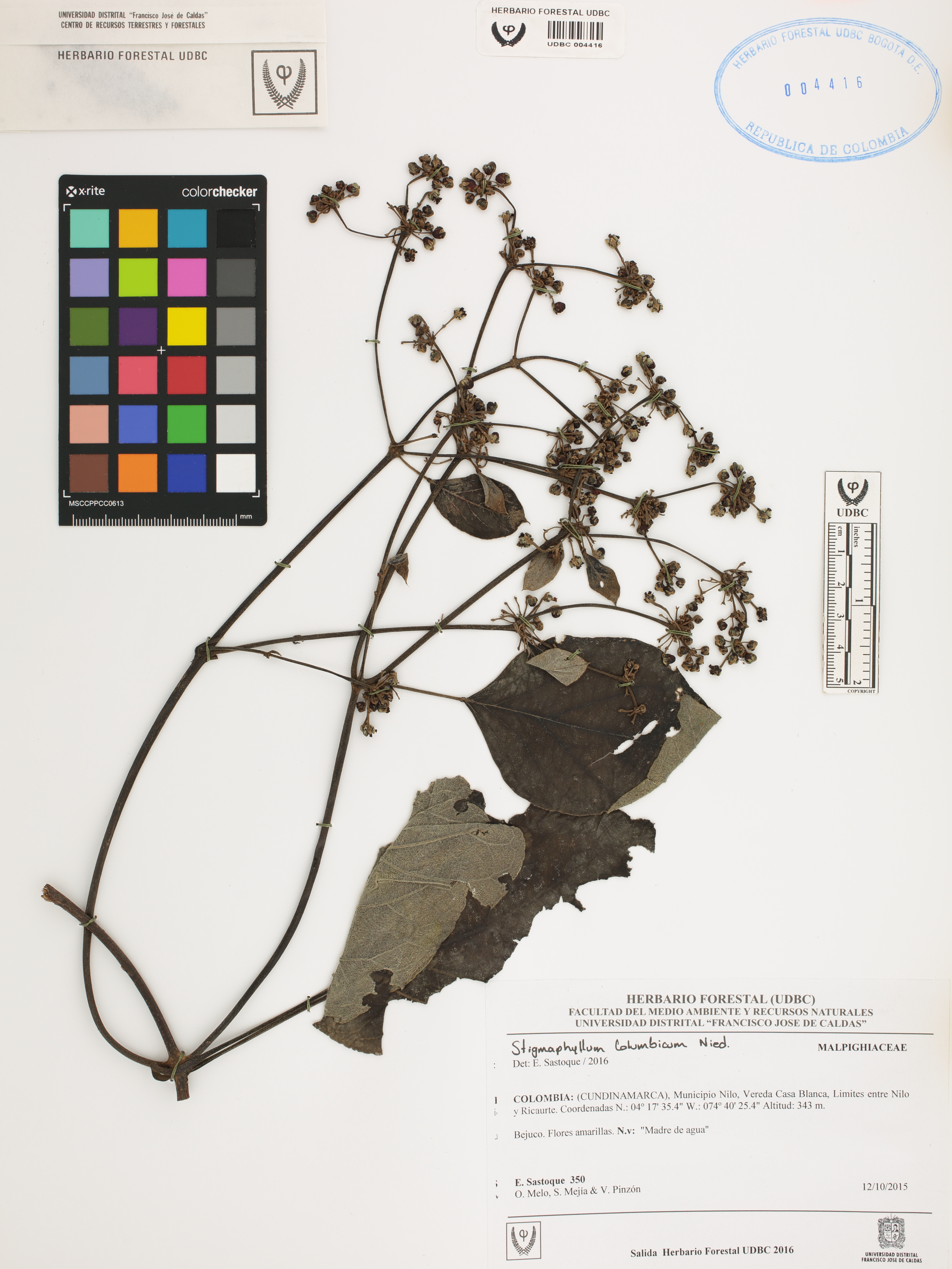 Fotografía del ejemplar Sastoque, E. 350, determinado como Stigmaphyllon columbicum en el año 2016
