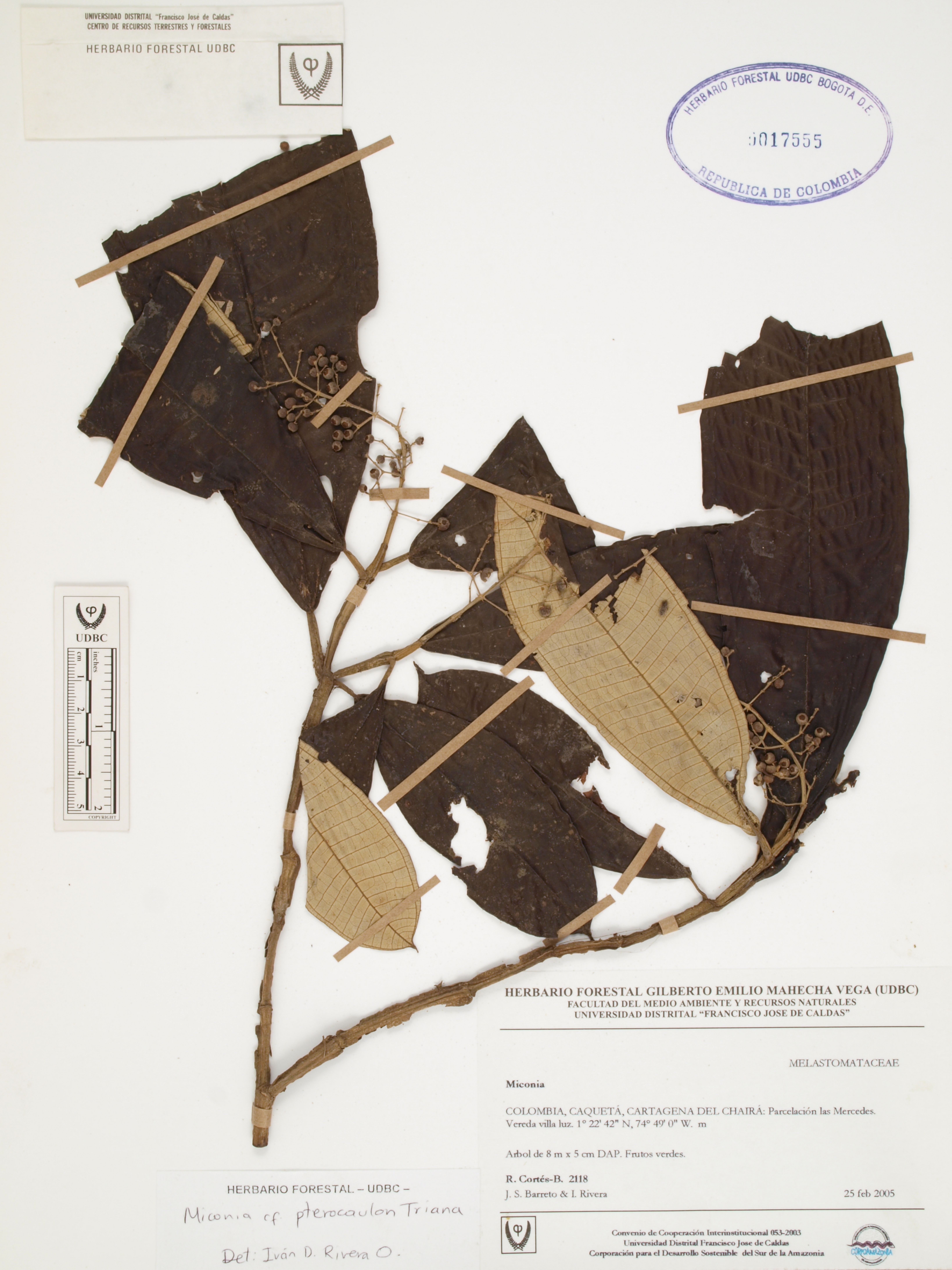 | dc.description | Fotografía del ejemplar Cortés-B., R. 2118, determinado como Miconia pterocaulon en el año 2005 | |
