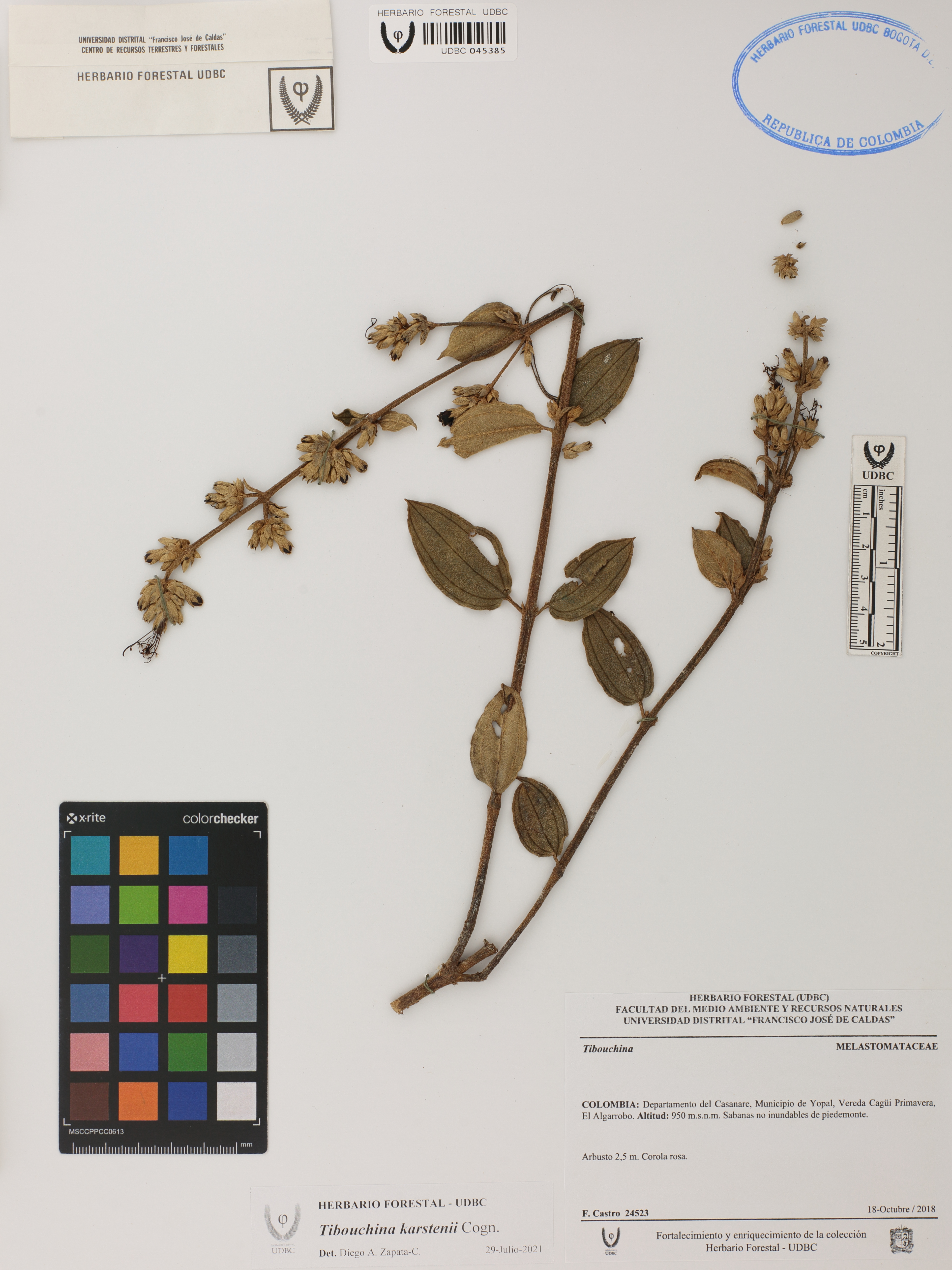 Fotografía del ejemplar Castro, F. 24523, determinado como Tibouchina karstenii en el año 2021