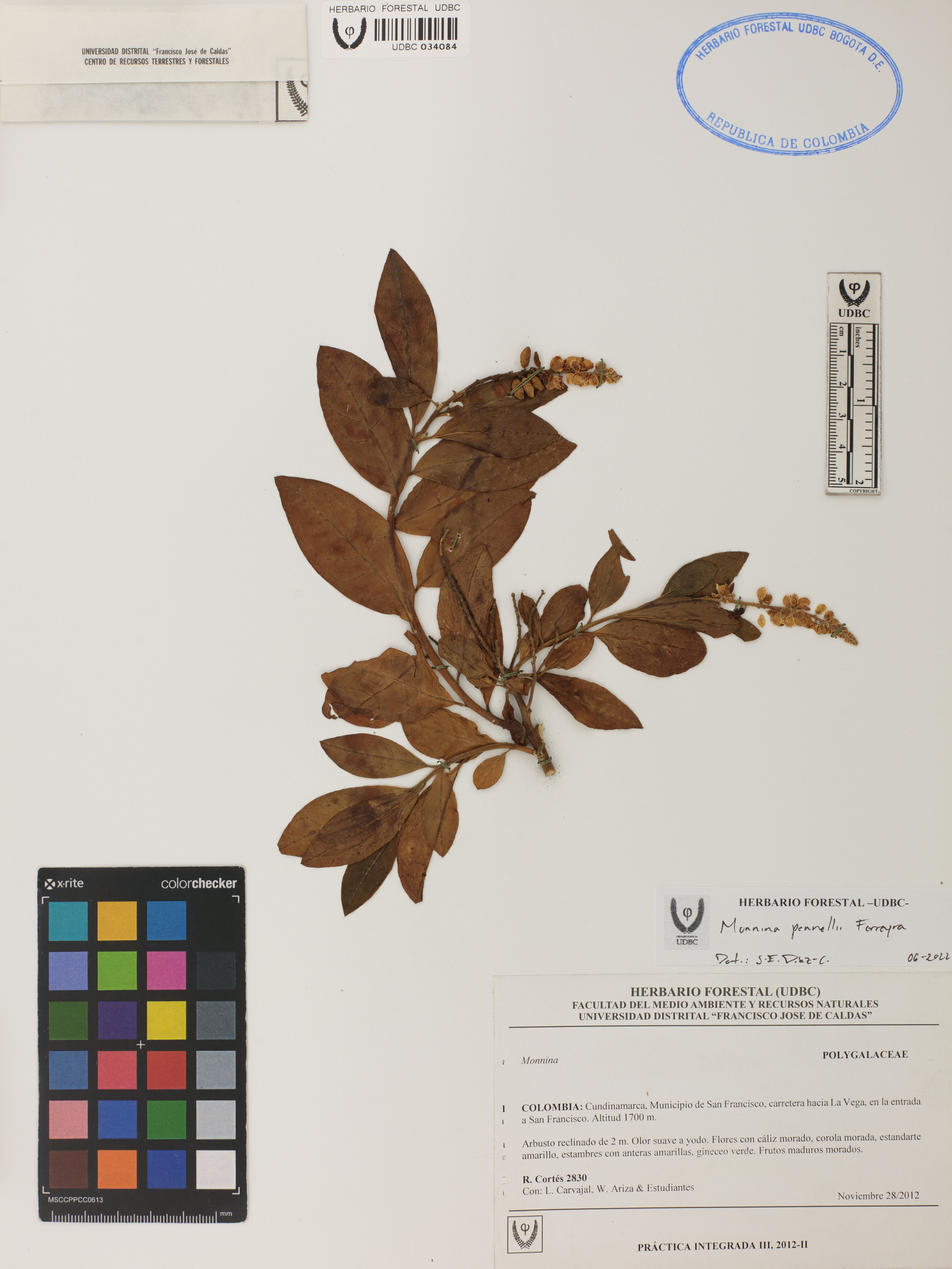 Fotografía del ejemplar Cortés, R. 2830, determinado como Monnina pennellii en el año 2022