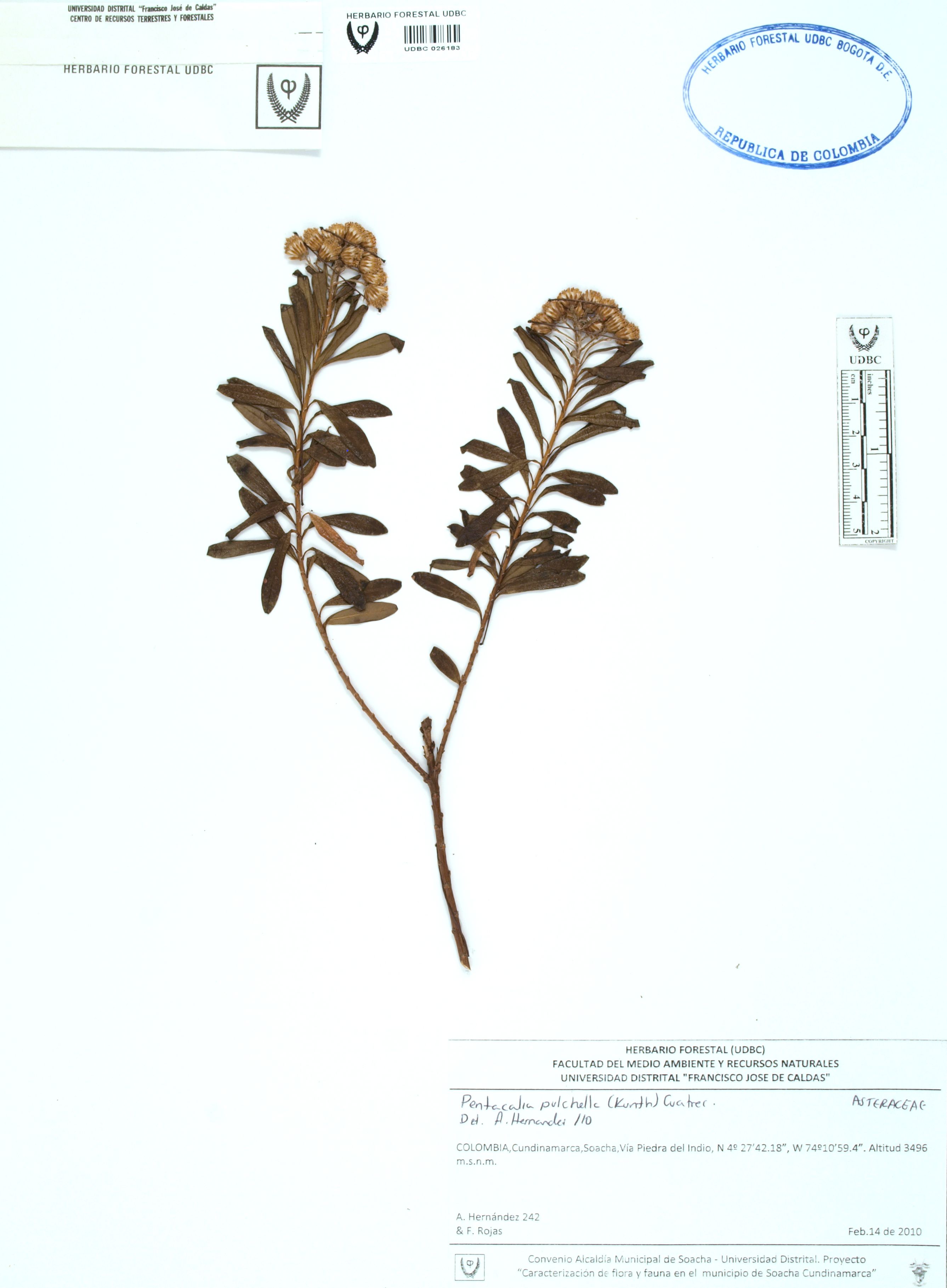 Fotografía del ejemplar Hernández, A. 242, determinado como Pentacalia pulchella en el año 2010