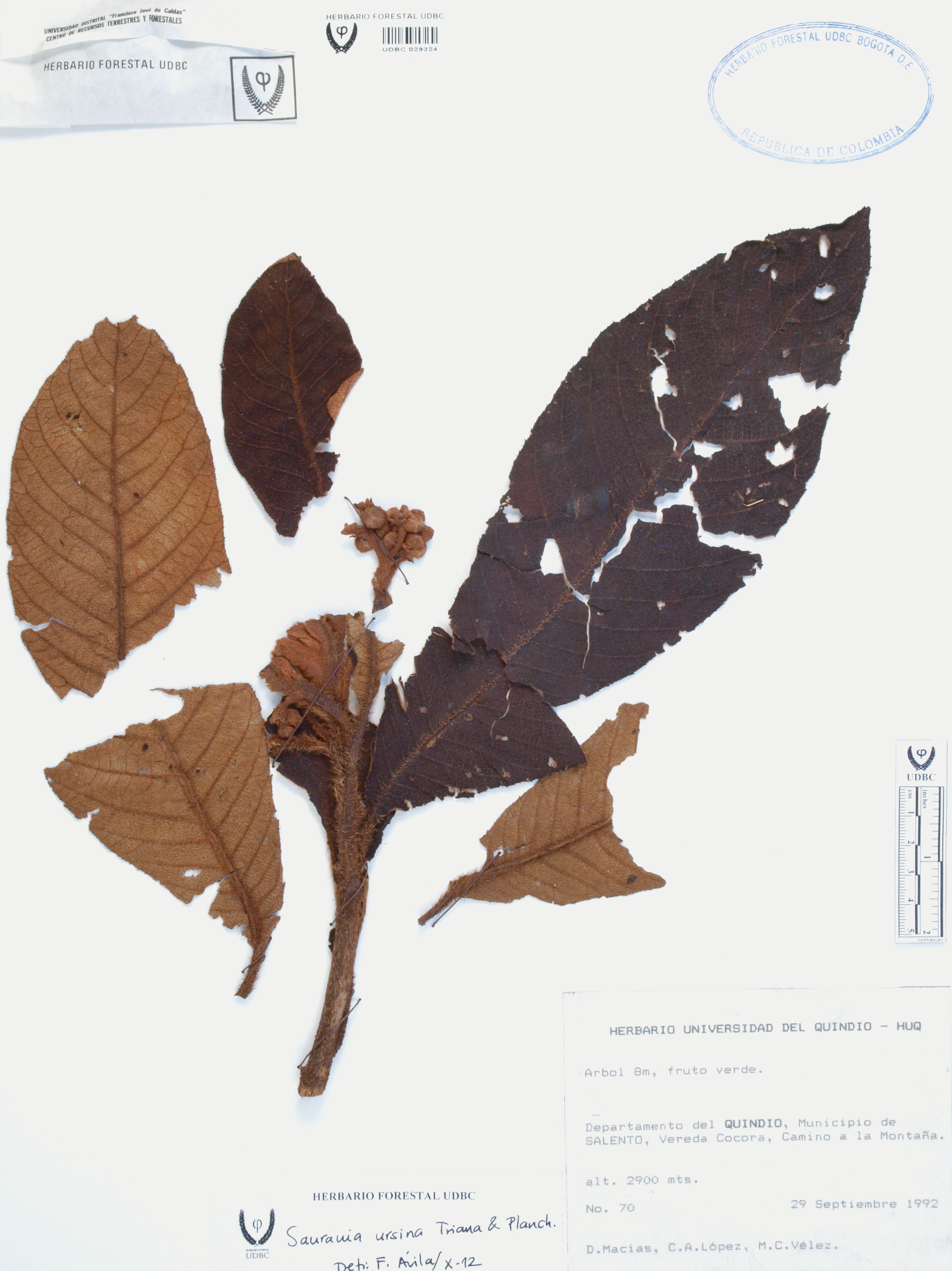Fotografía del ejemplar Macías, D. 70, determinado como Saurauia ursina en el año 2012