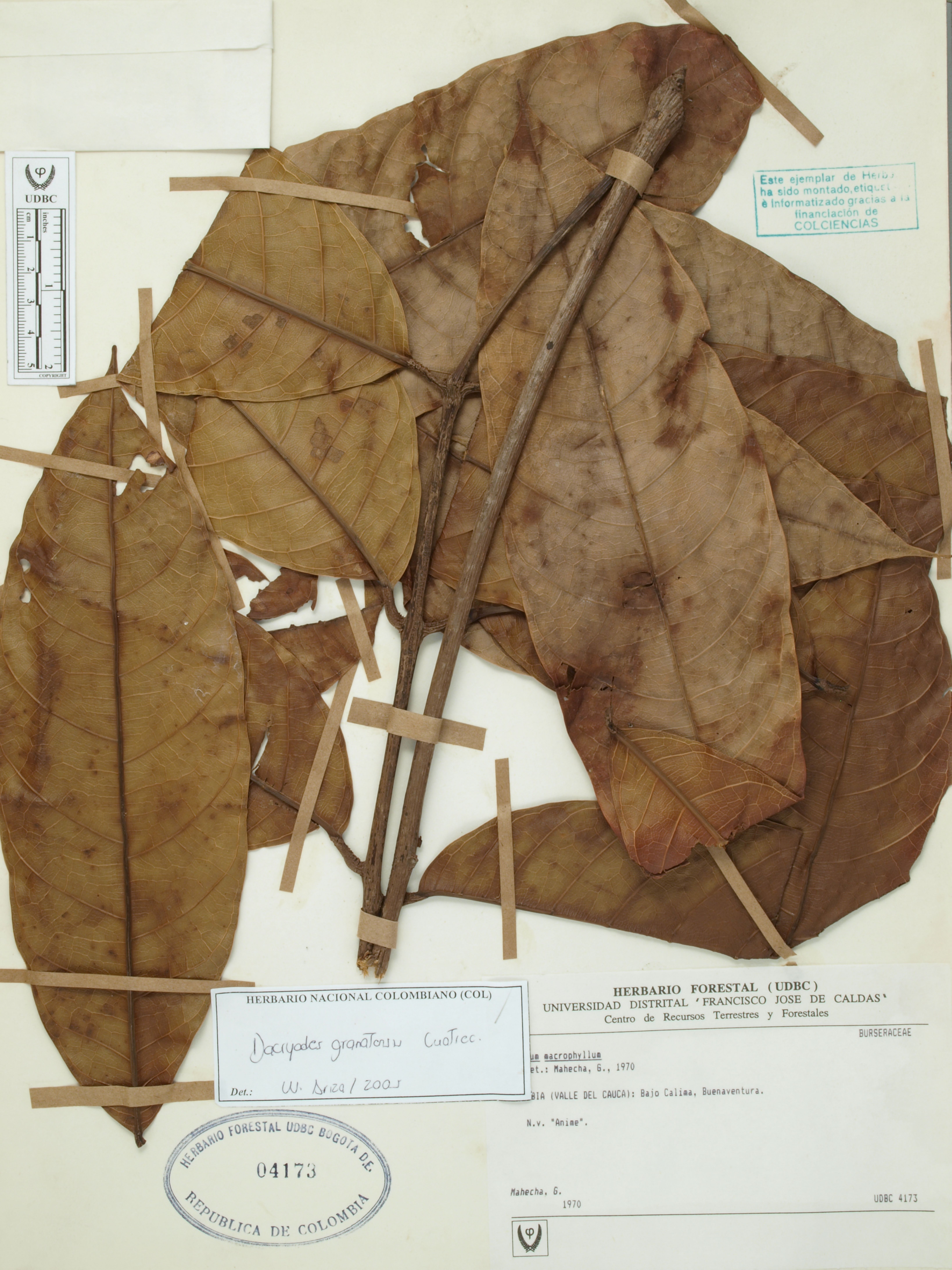 Fotografía del ejemplar Mahecha, G., determinado como Dacryodes granatensis en el año 2005