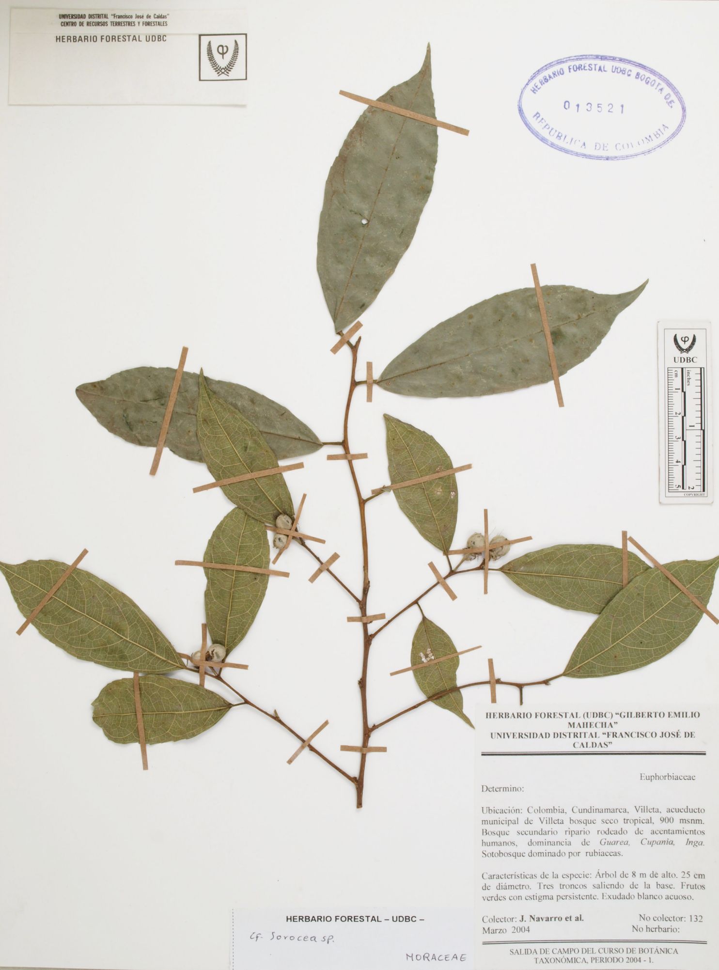 Fotografía del ejemplar Navarro, J. 132, determinado como Sorocea sp.