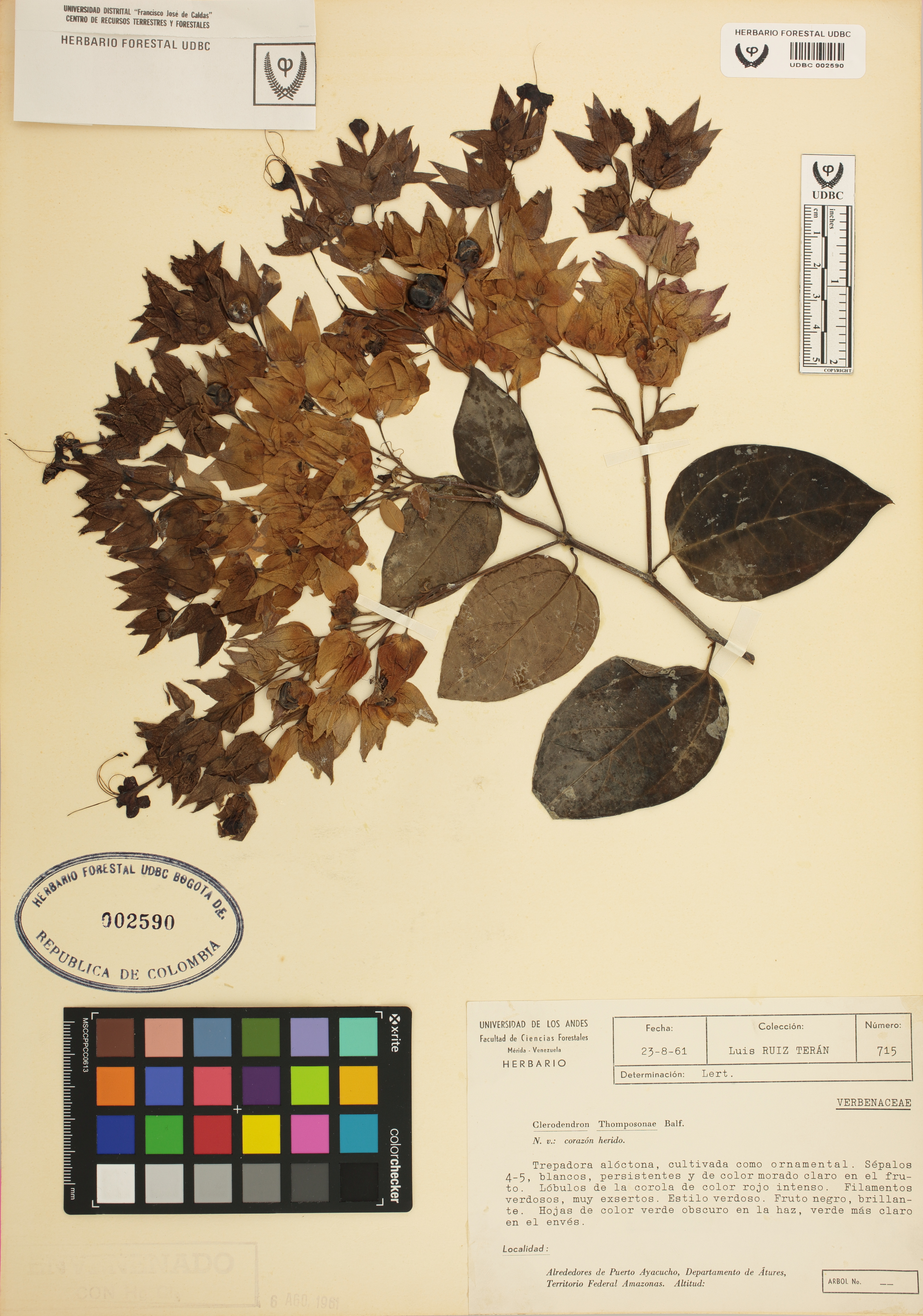 Fotografía del ejemplar Ruiz, L. 715, determinado como Clerodendrum thomsoniae