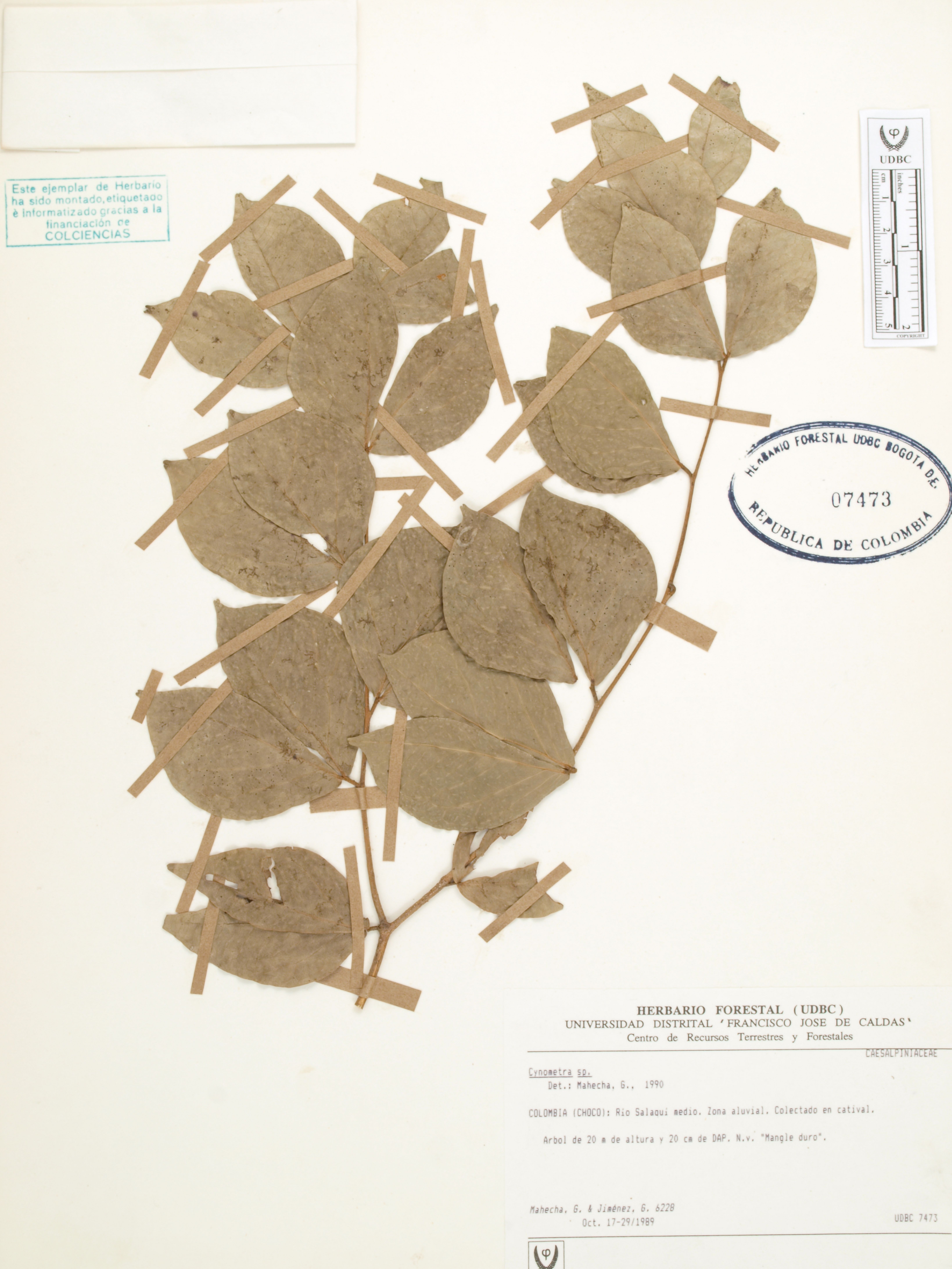 Fotografía del ejemplar Mahecha, G. 6228, determinado como Cynometra sp. en el año 1990