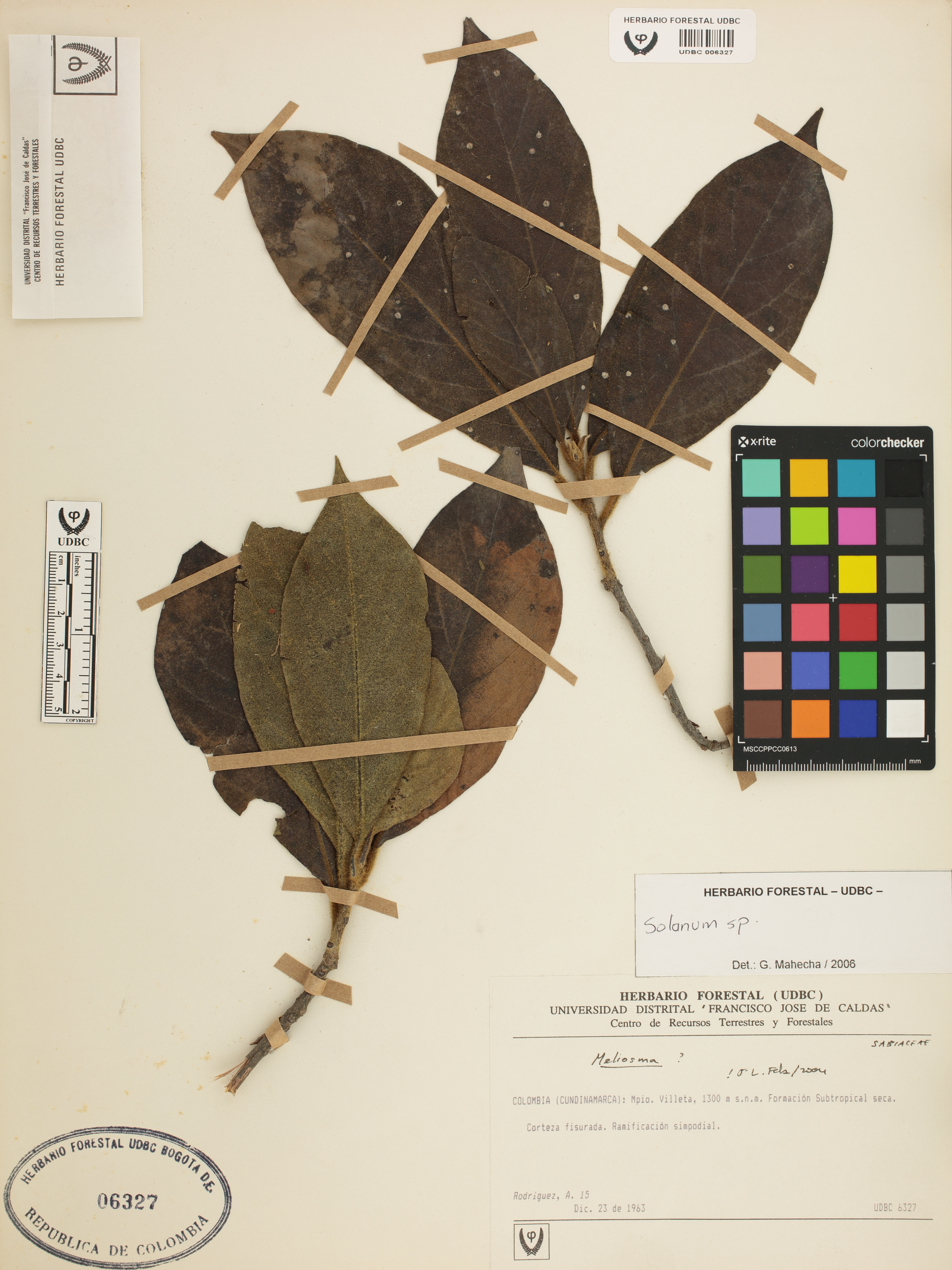 Fotografía del ejemplar Rodríguez, A. 15, determinado como Solanum sp. en el año 2006