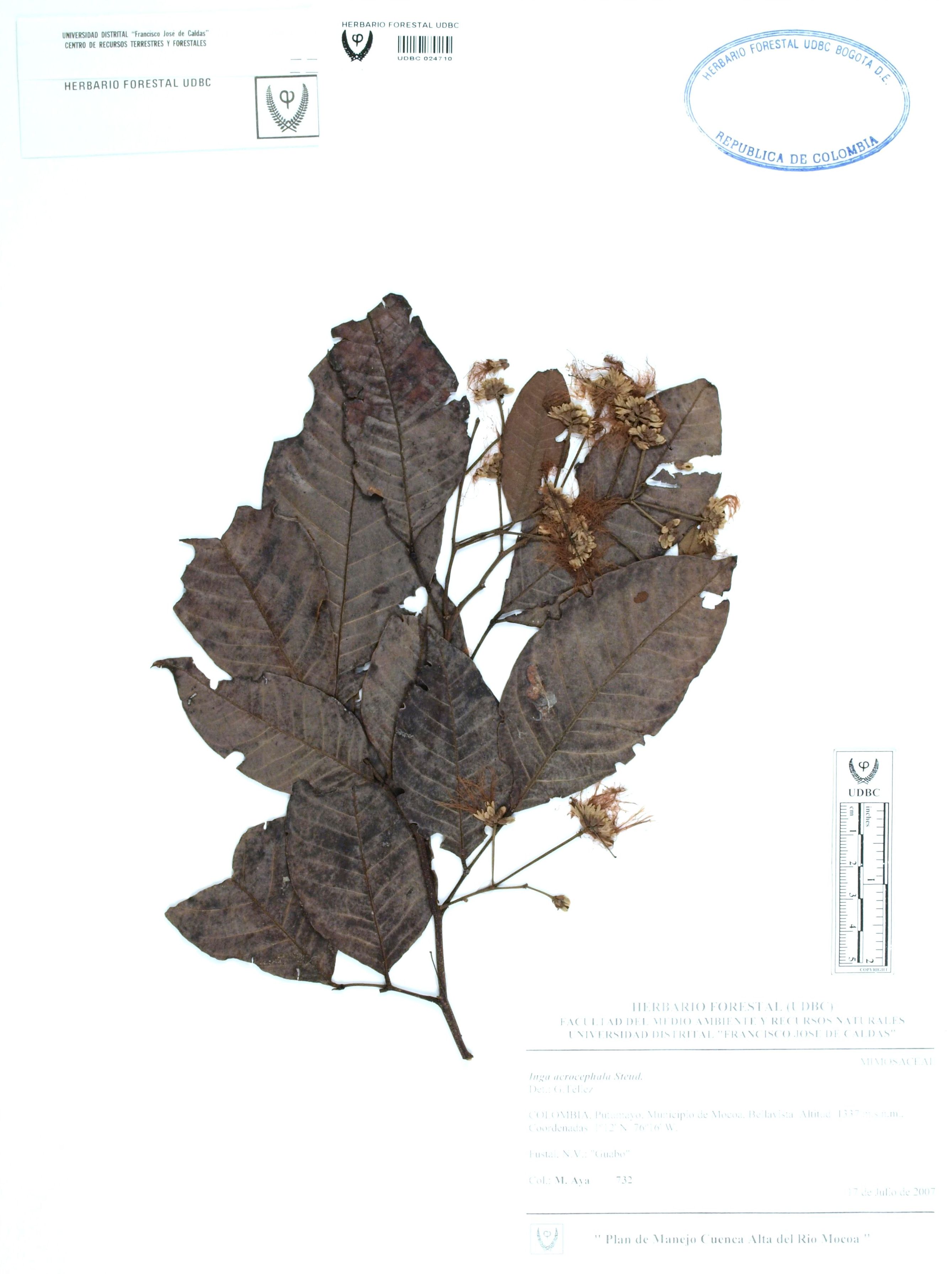 Fotografía del ejemplar Aya, M. 732, determinado como Inga punctata en el año 2014