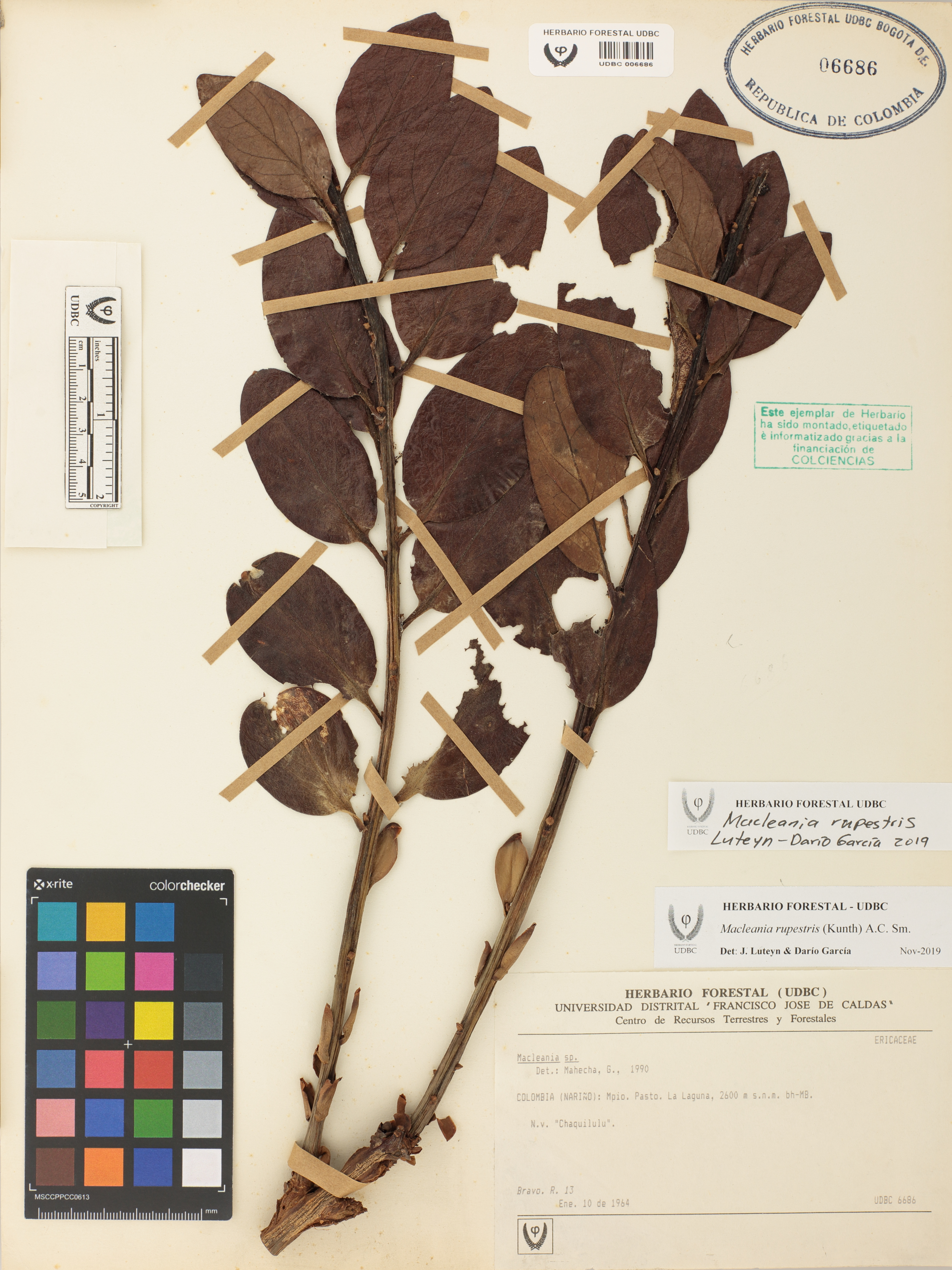 Fotografía del ejemplar Bravo, R. 13, determinado como Macleania rupestris en el año 2019