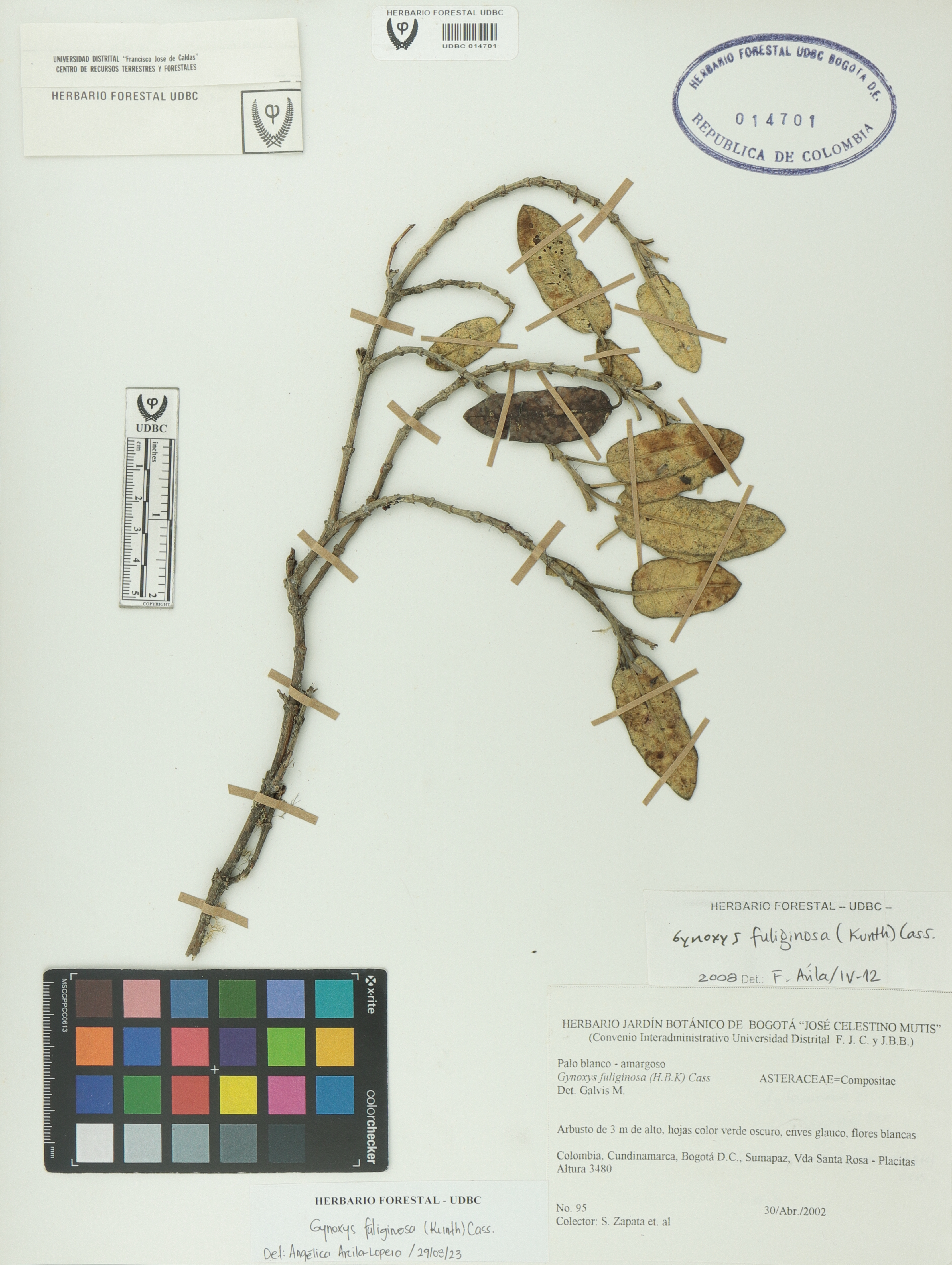 Fotografía del ejemplar Zapata, S. 95, determinado como Gynoxys fuliginosa