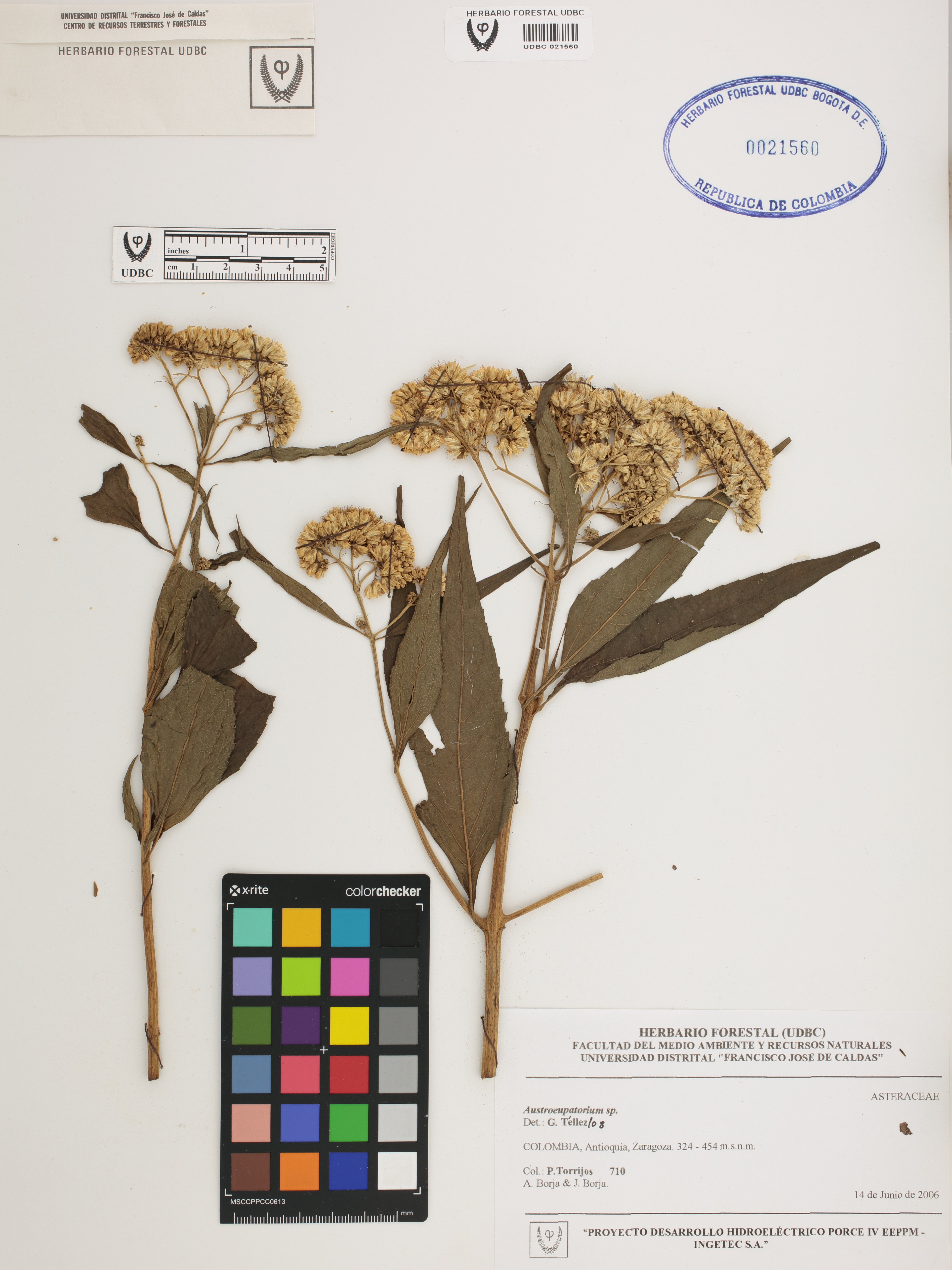 Fotografía del ejemplar Torrijos, P. 710, determinado como Austroeupatorium sp. en el año 2008