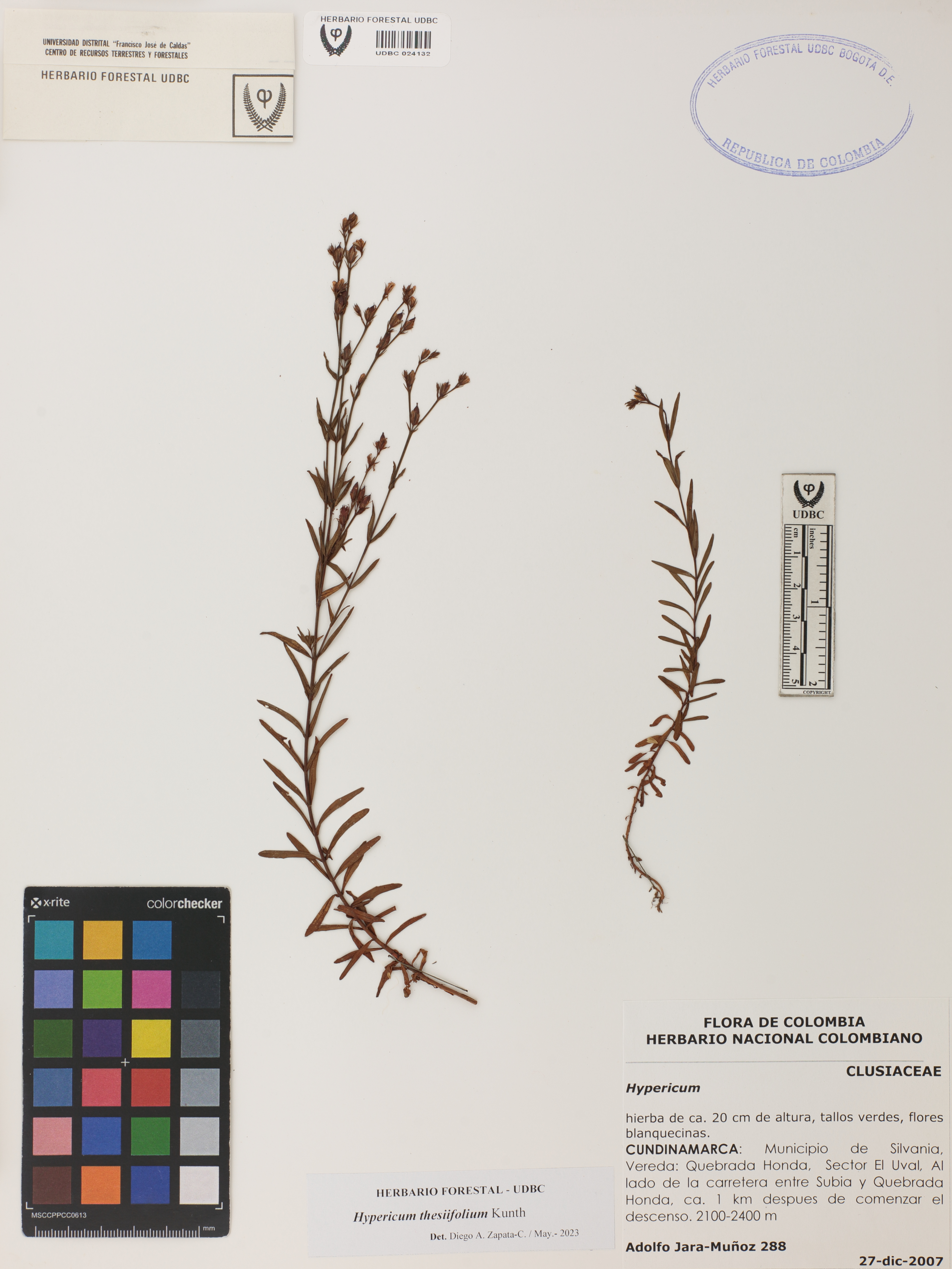 Fotografía del ejemplar Jara, A. 288, determinado como Hypericum thesiifolium en el año 2023