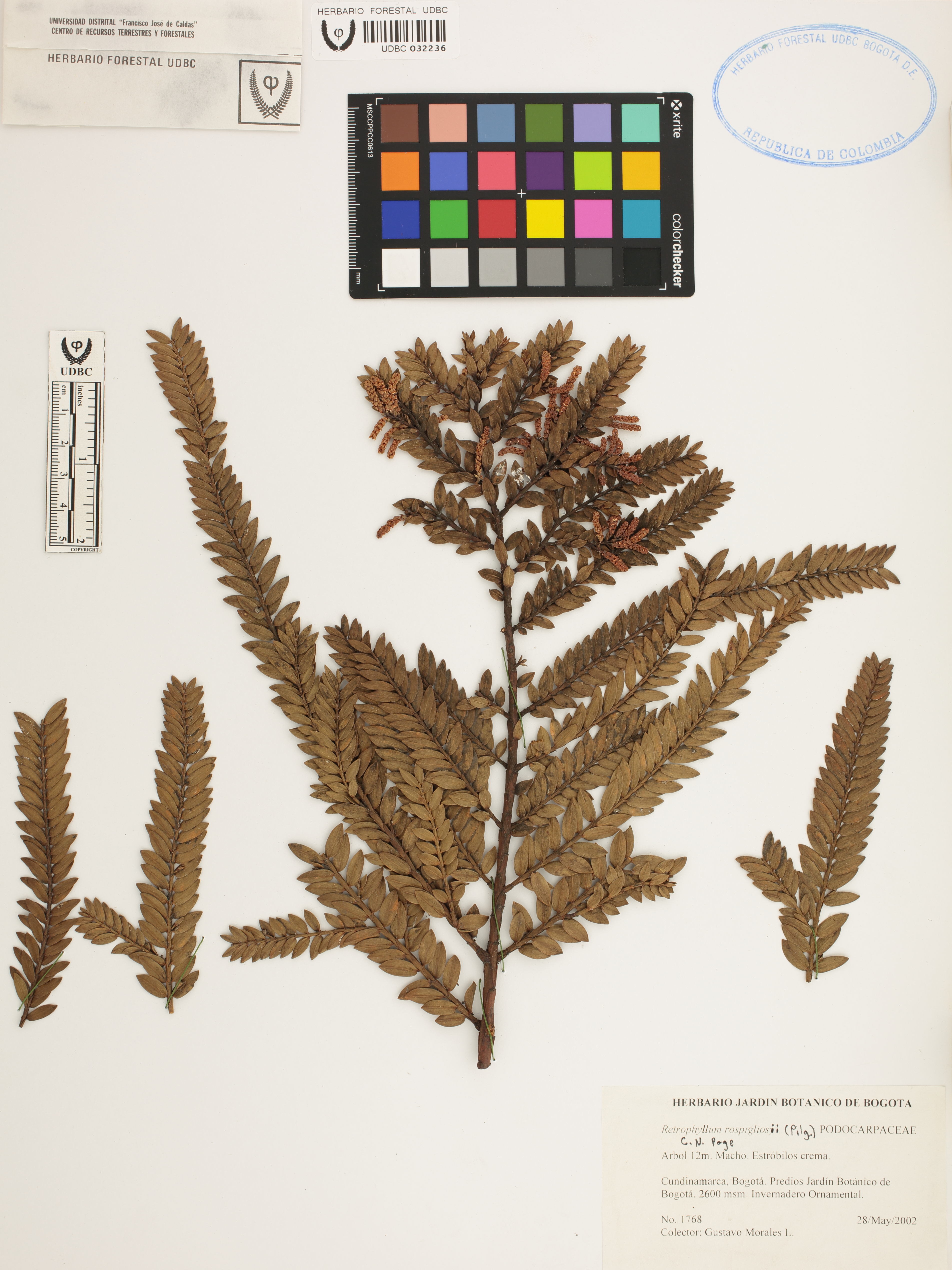 Fotografía del ejemplar Morales, G. 1768, determinado como Retrophyllum rospigliosii