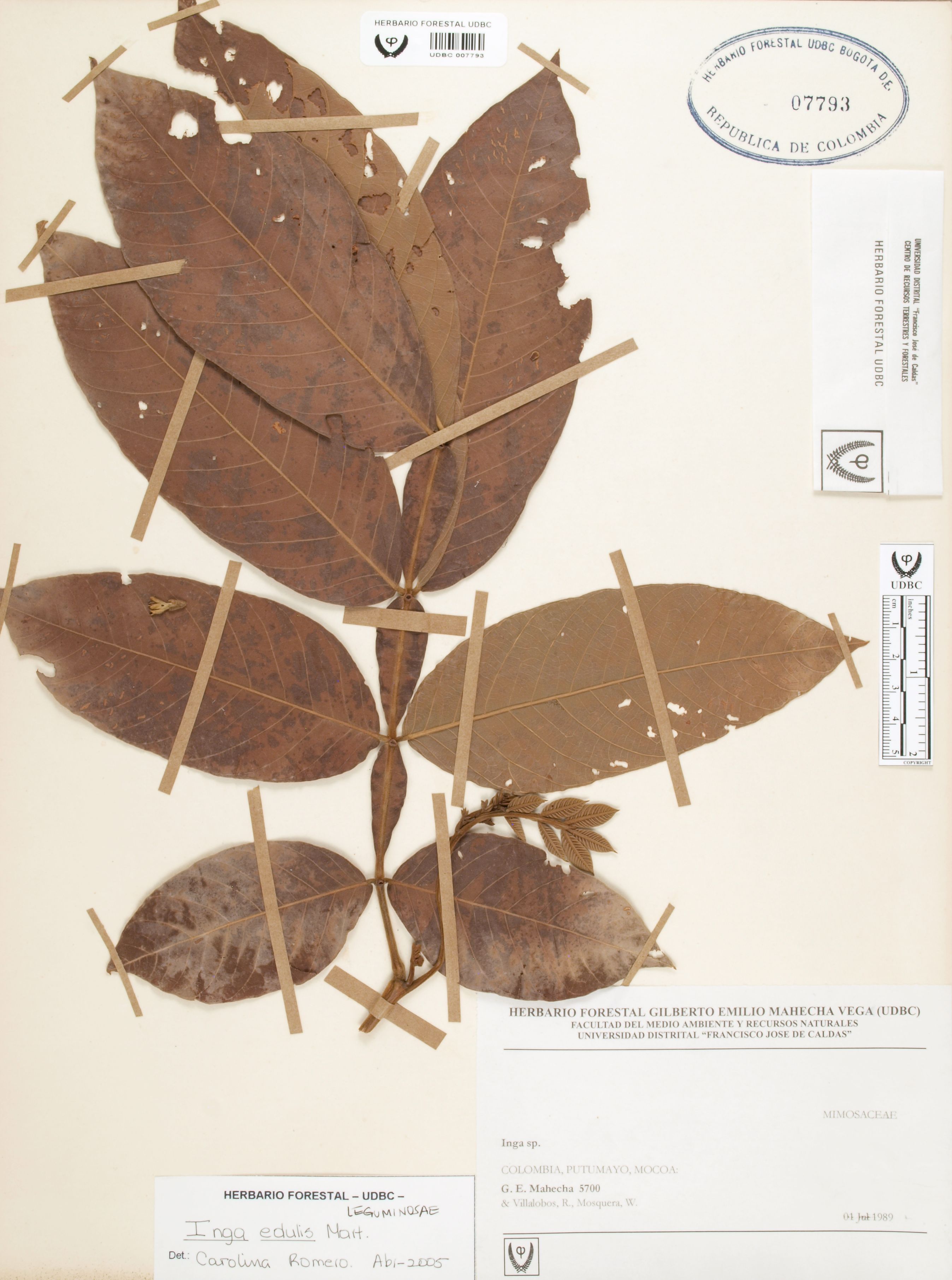 Fotografía del ejemplar Mahecha, G. 5700, determinado como Inga edulis en el año 2005