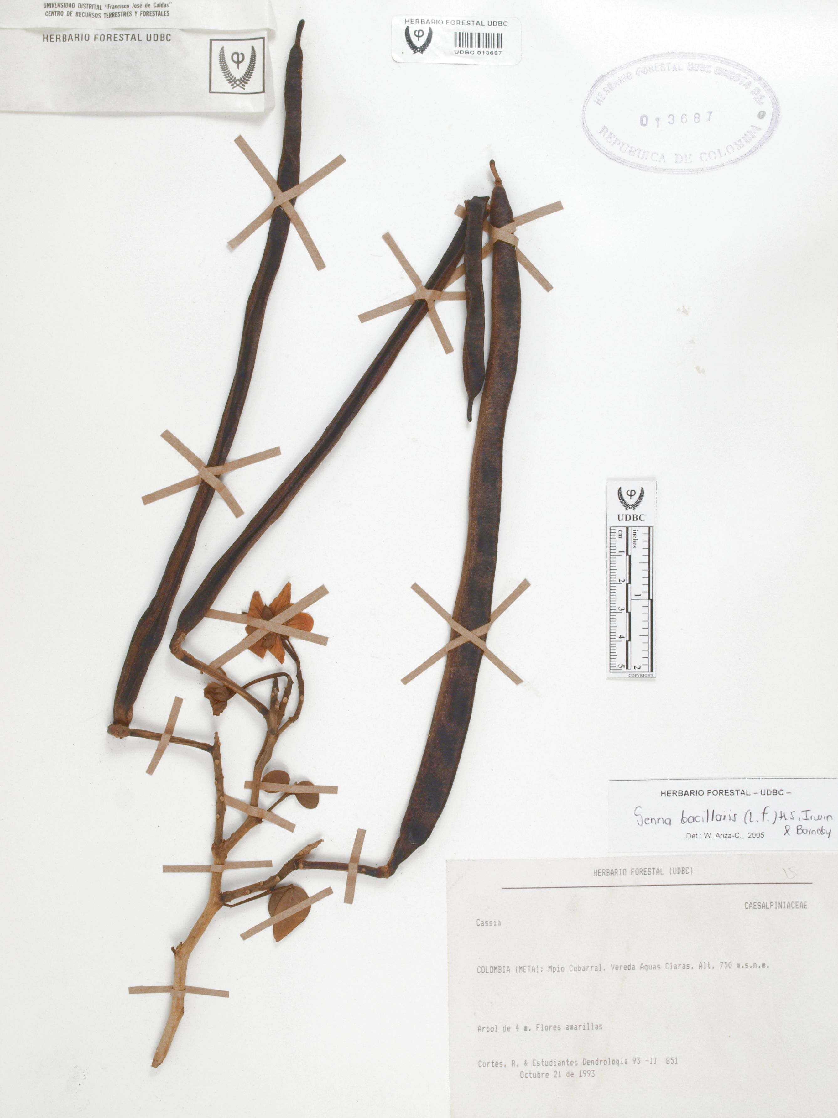 Fotografía del ejemplar Cortés-B., R. 851, determinado como Senna bacillaris en el año 2005