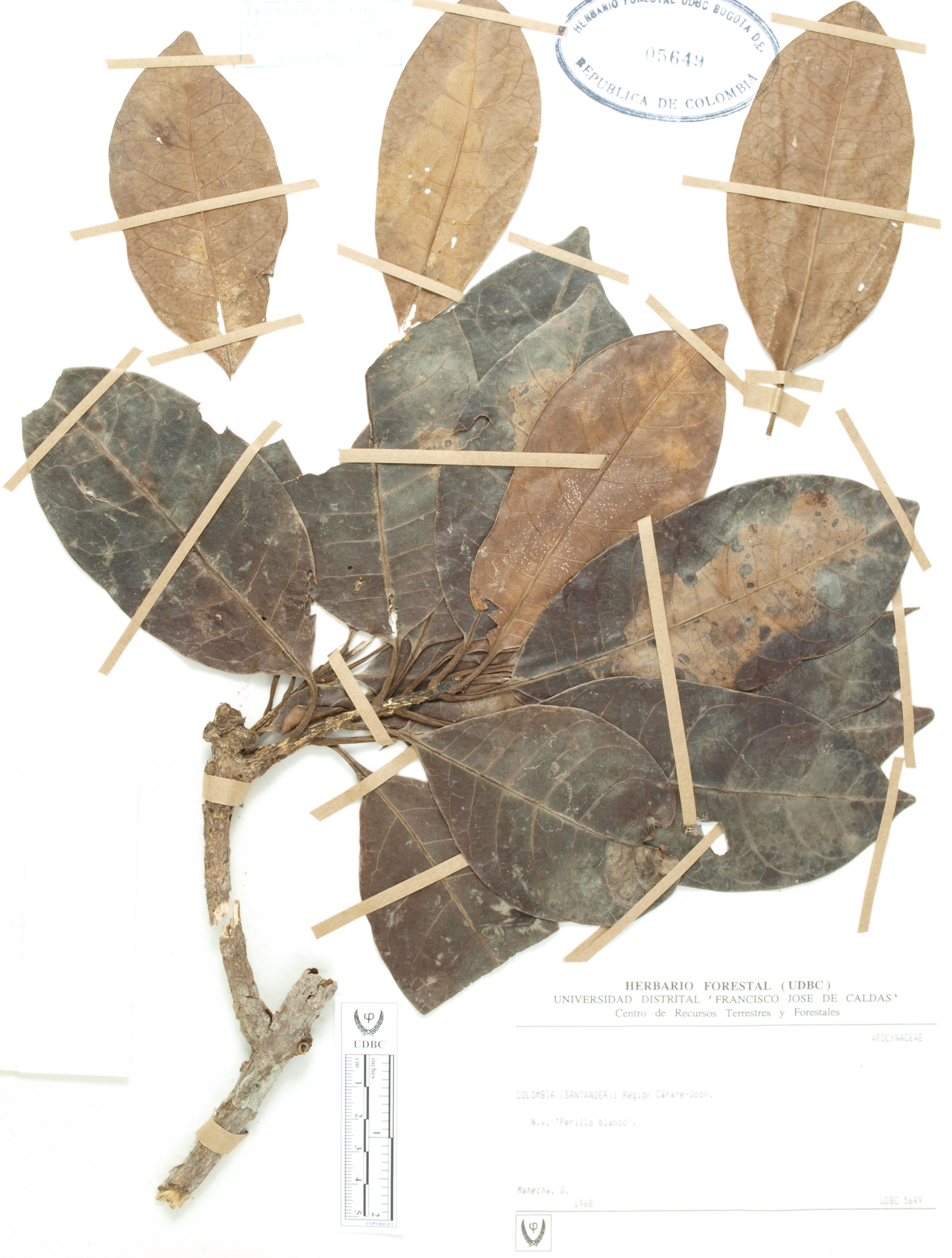Fotografía del ejemplar Mahecha, G., determinado como Himatanthus articulatus en el año 2017
